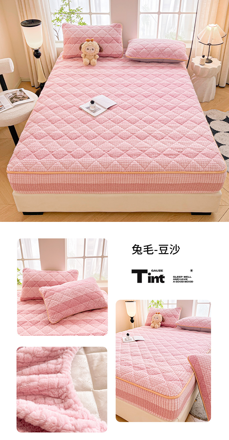 福来临家纺 2025新款高克重兔毛绒床笠 兔毛床笠款-豆沙