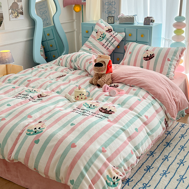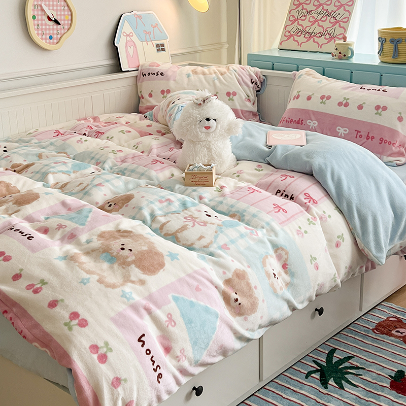 (总)昔可家纺 2024新款印花牛奶绒四件套系列-洛丽塔风,萝莉小兔,小熊烘焙屋,小熊玩偶屋