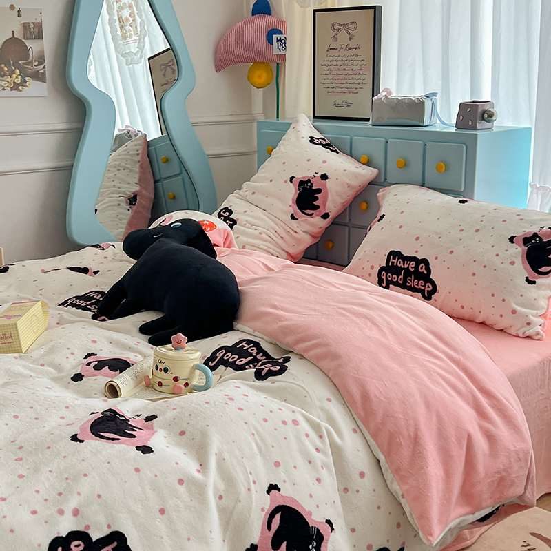 昔可家纺 2024新款印花牛奶绒四件套系列-卡通系列 萌萌小修狗