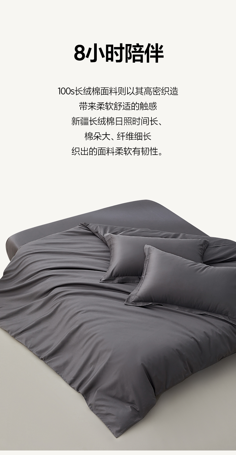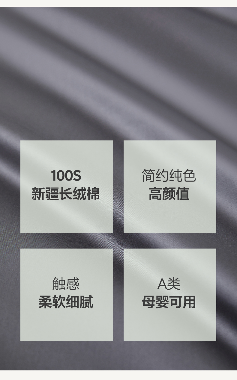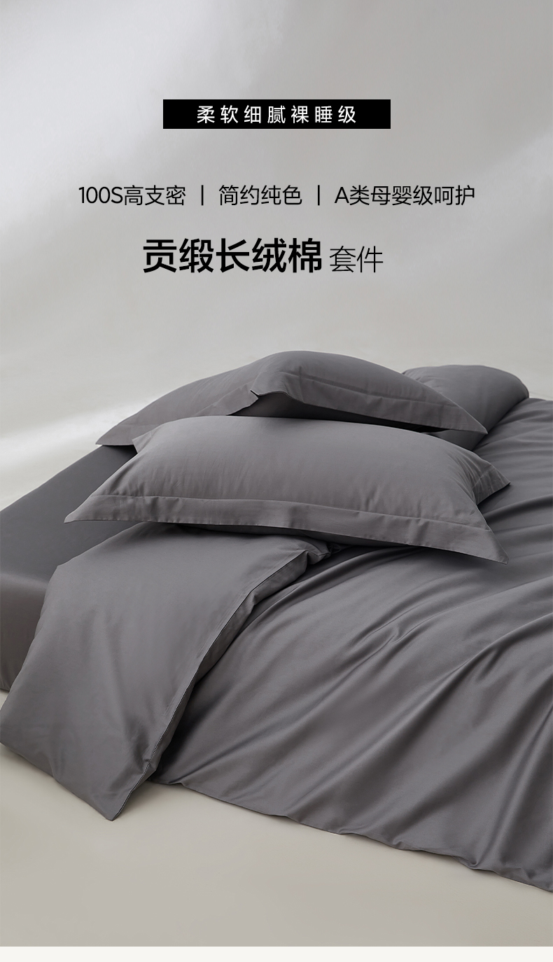 当前位置: 91家纺网 > 商品网购 > 床品套件 > 四件套 > 长绒棉四件套 > 轩和家居 2024新款A类50S贡缎长绒棉四件套系列 梦境灰