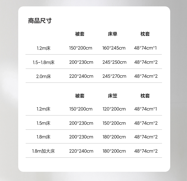 1.8m床笠款被套加大四件套 | ¥190.00 |