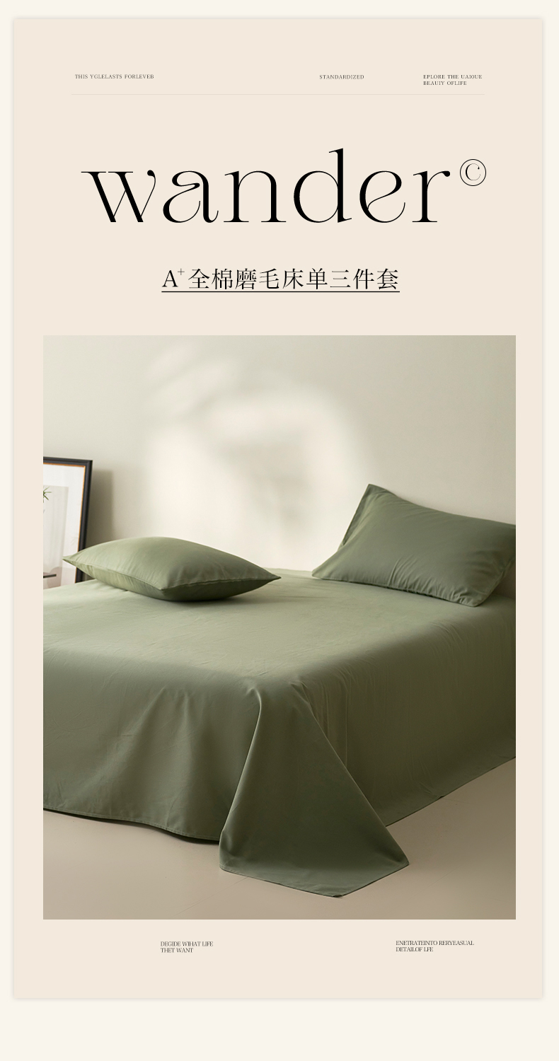 当前位置: 91家纺网 > 商品网购 > 床上用品 > 床单 > 2024新款全棉加厚磨毛纯色单床单系列 松霜绿