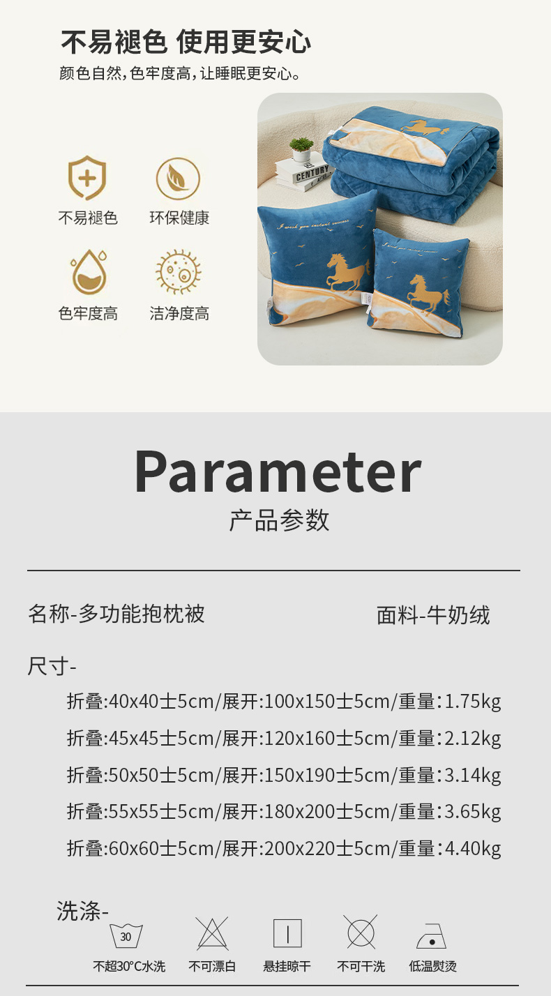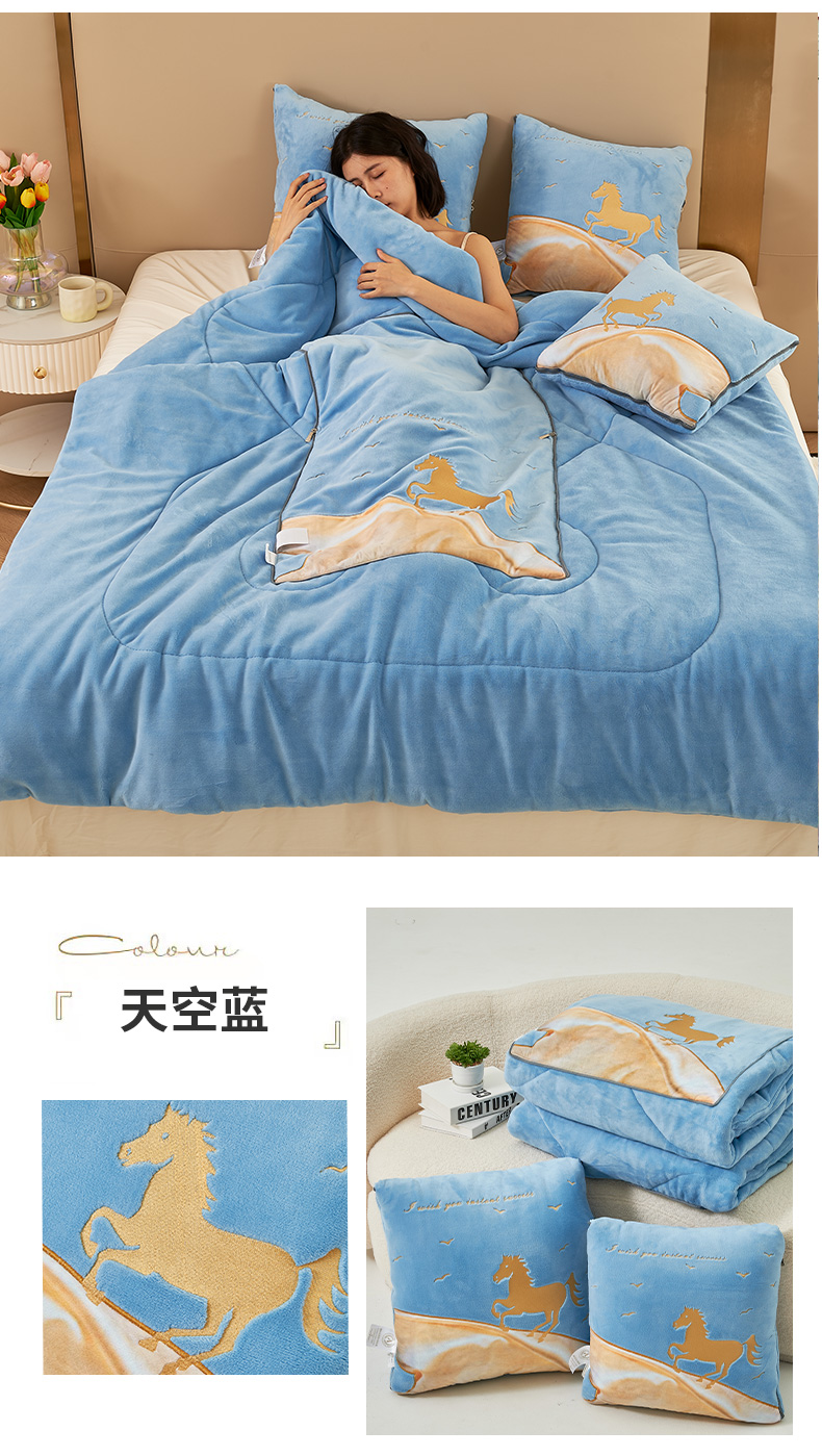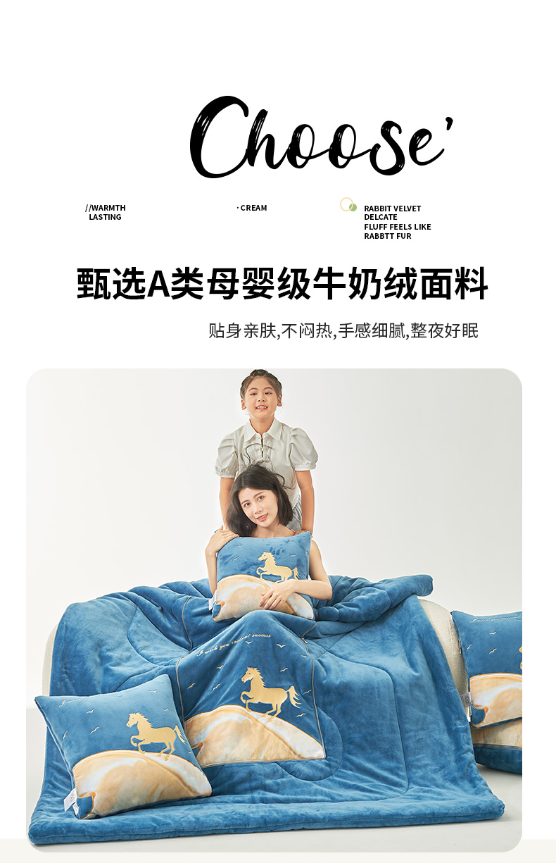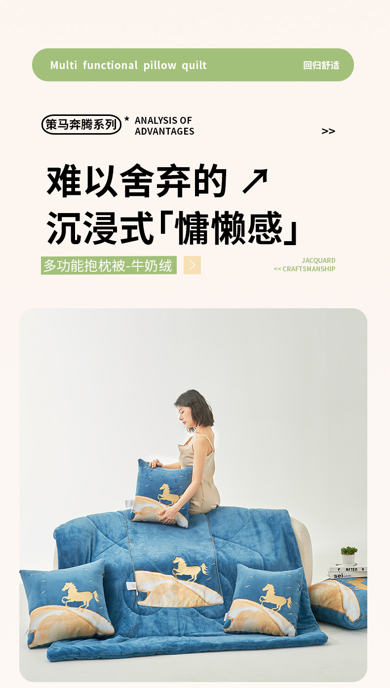 商品名称:(总)照世家纺 2024新款牛奶绒策马奔腾抱枕被系列(控价72、92、139、169、219)