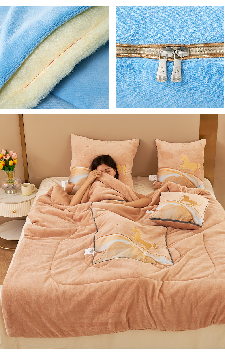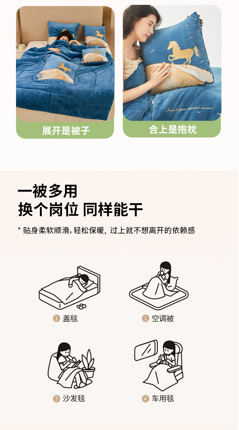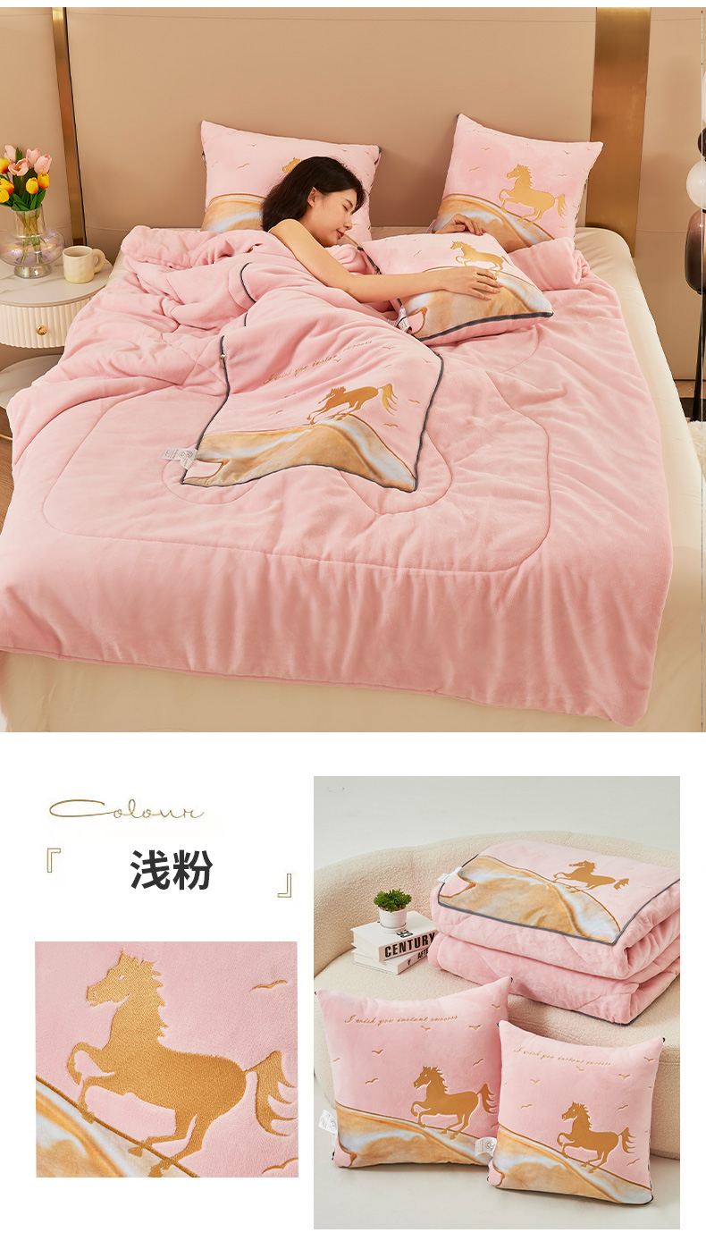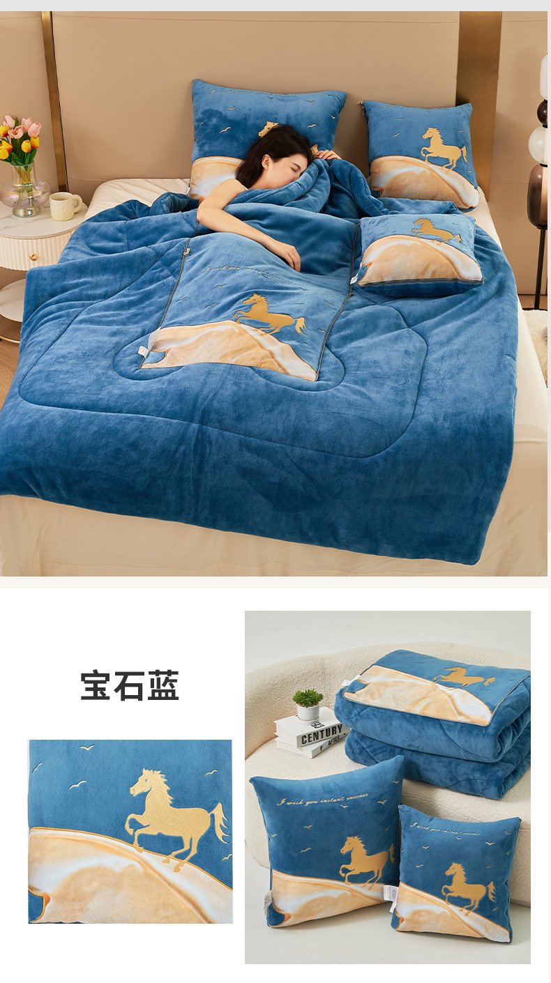 商品名称:(总)照世家纺 2024新款牛奶绒策马奔腾抱枕被系列(控价72、92、139、169、219)