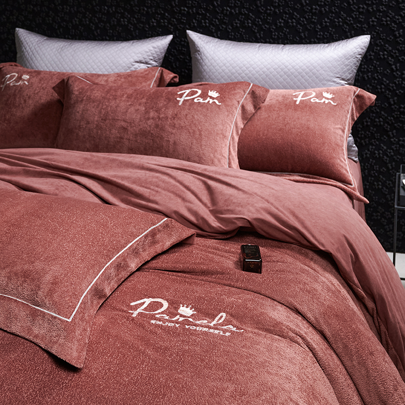 (总)时亿 2023新款加厚保暖獭兔绒四件套,抹茶绿,肉肉粉