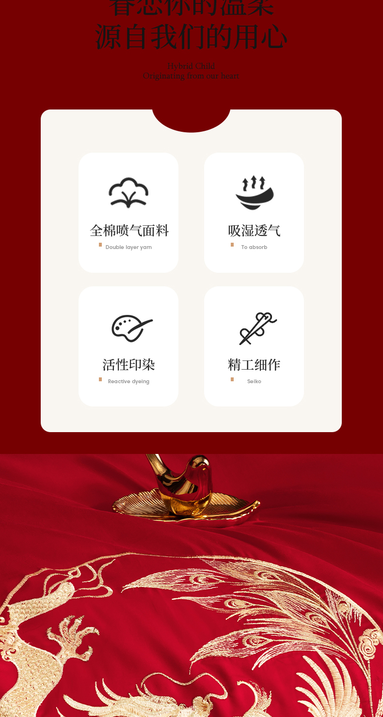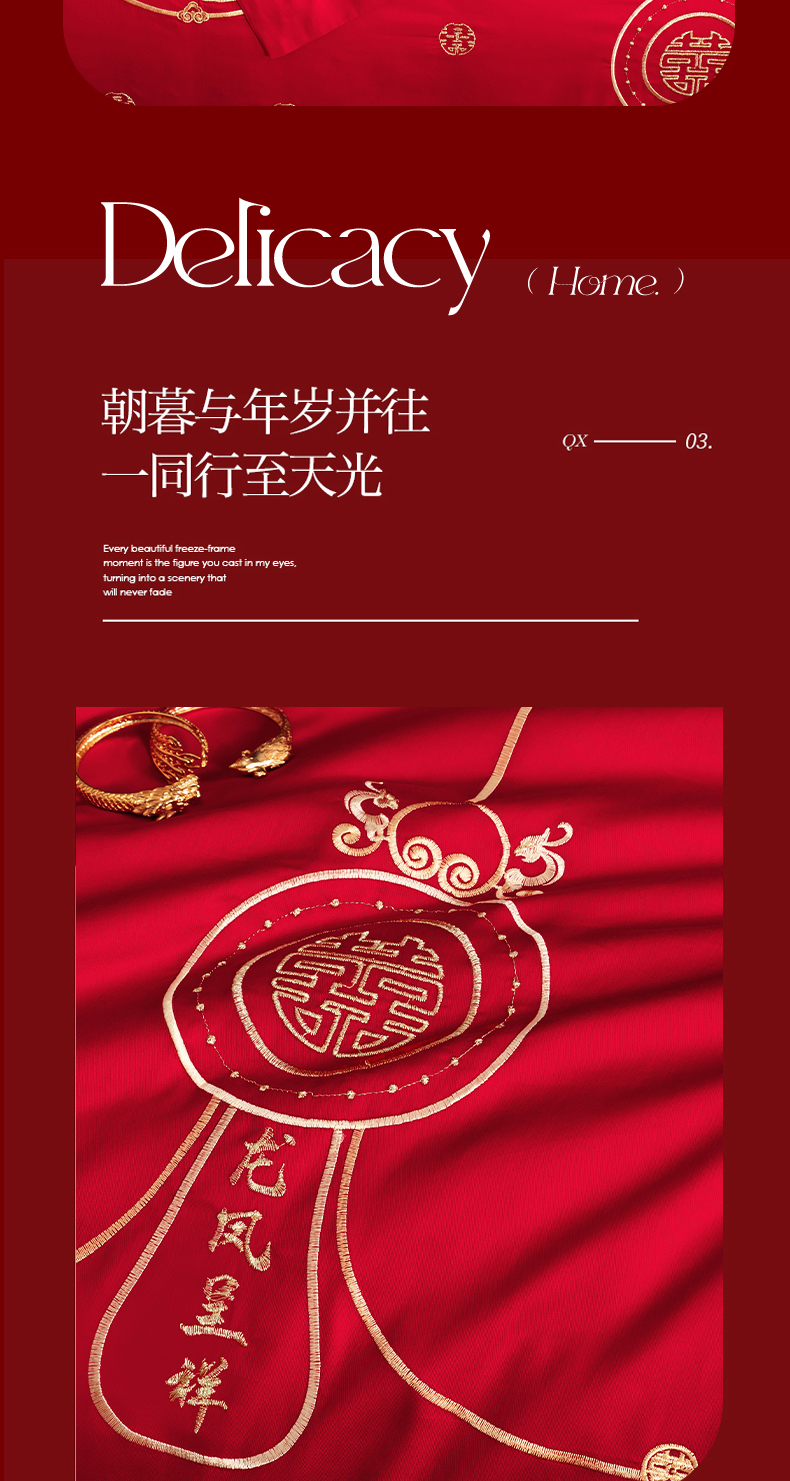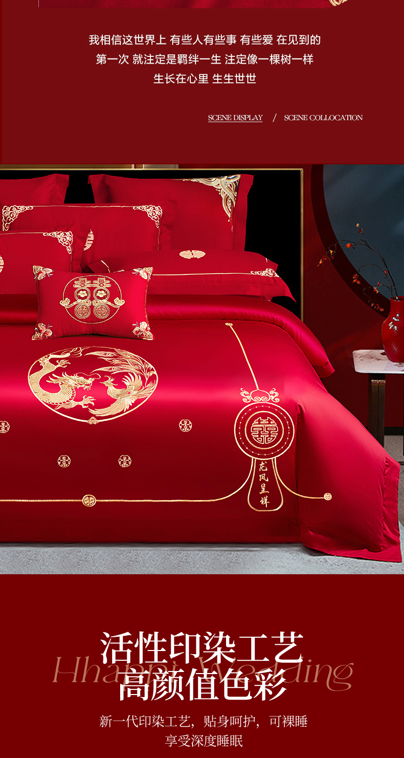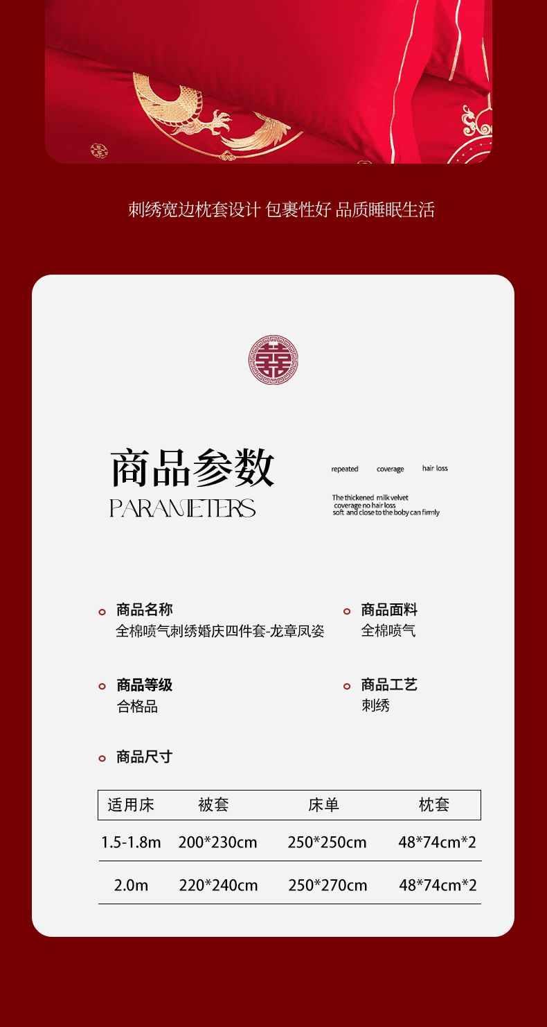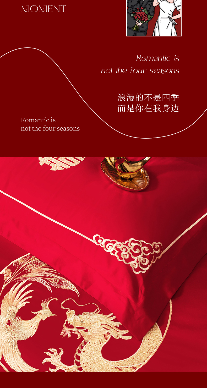 商品名称:张公子婚庆馆 2025新款全棉40s喷气四件套婚庆系列 龙章凤姿-床单款