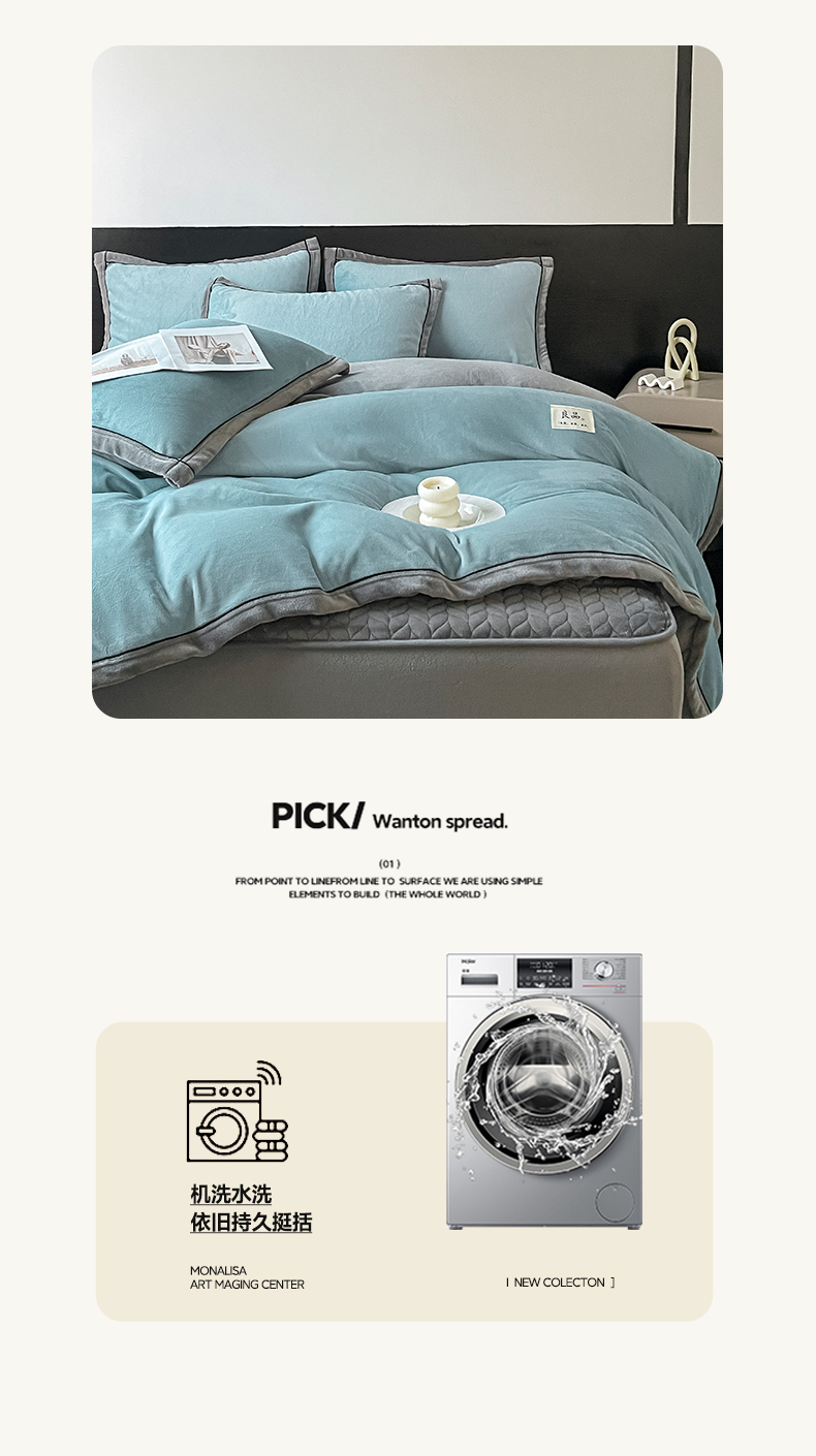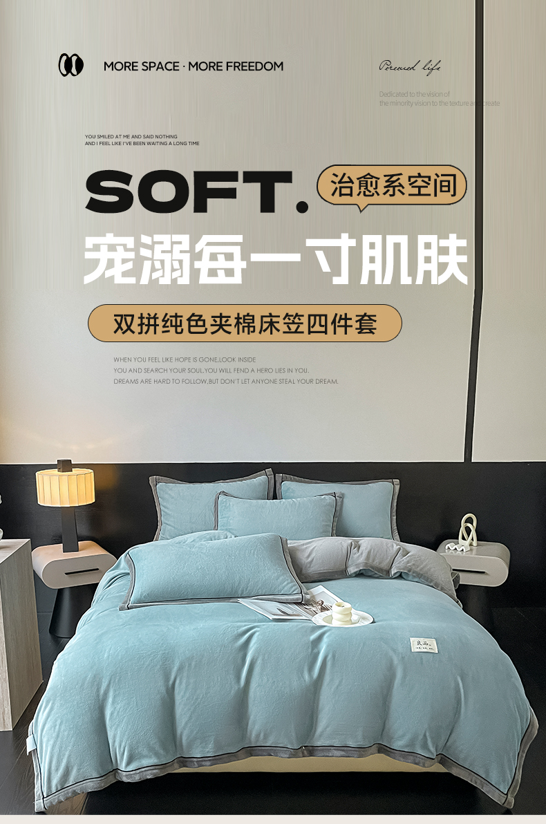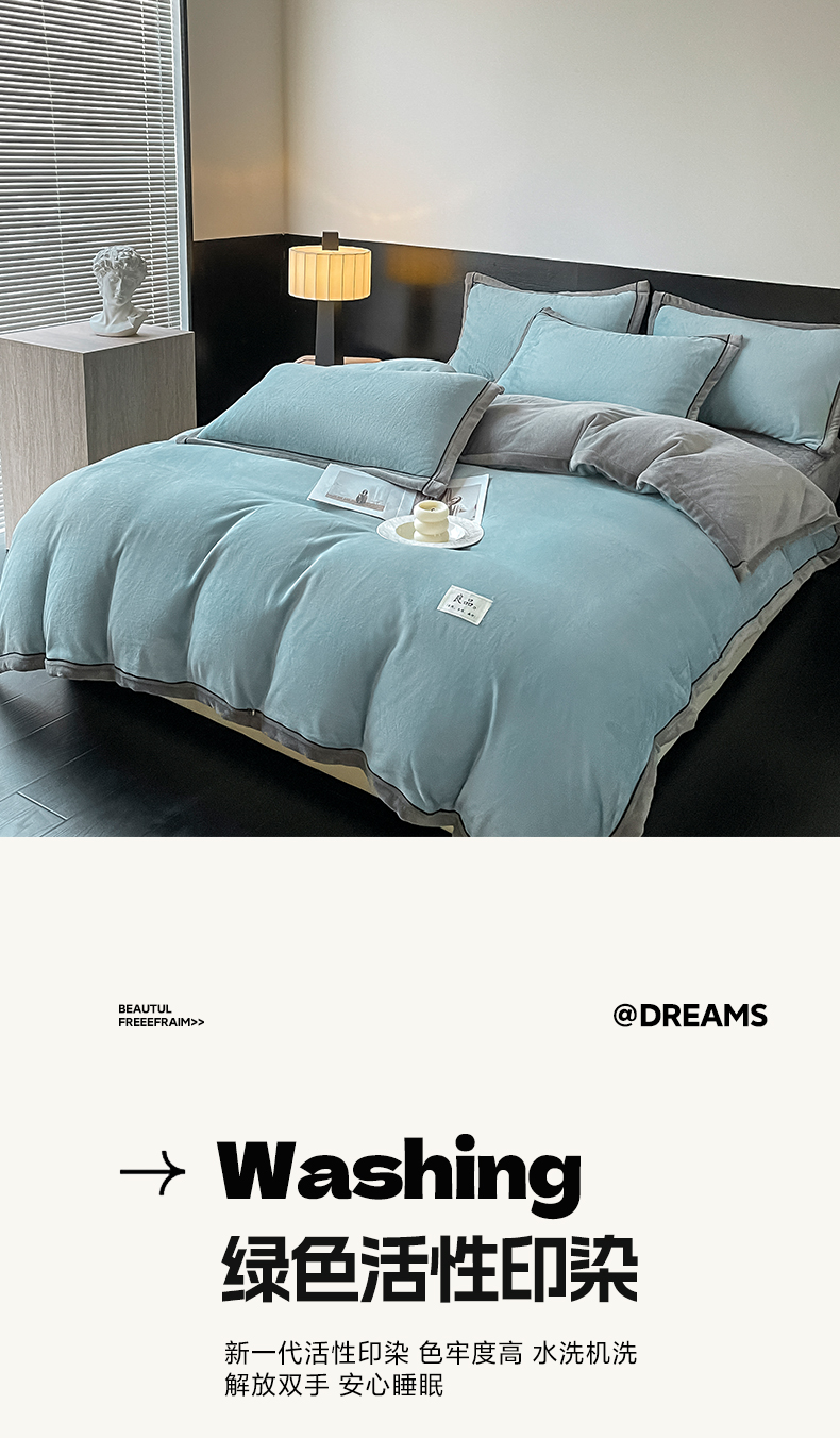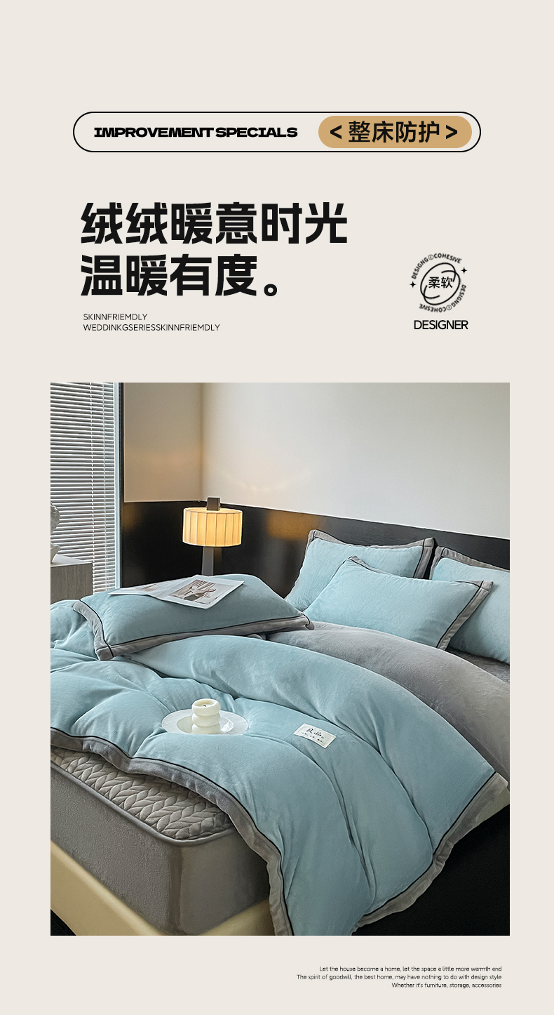 当前位置: 91家纺网 > 商品网购 > 床品套件 > 四件套 > 牛奶绒四件套 > 欧邦 新款纯色双拼牛奶绒夹棉床笠四件套 天蓝+浅灰