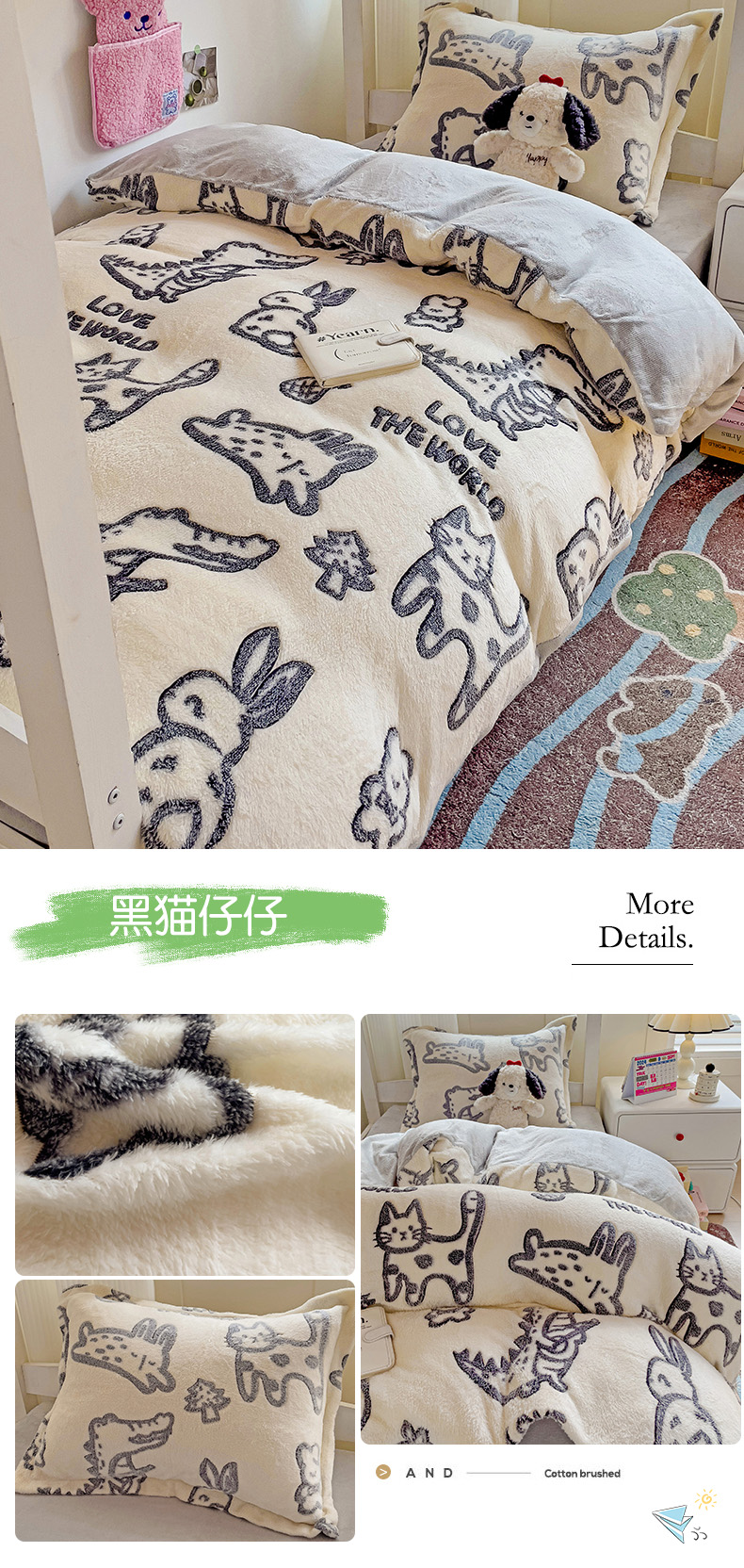 当前位置: 91家纺网 > 商品网购 > 床品套件 > 三件套 > 贝扬思家纺 2024新款加厚雪花绒印花三件套 黑猫仔仔