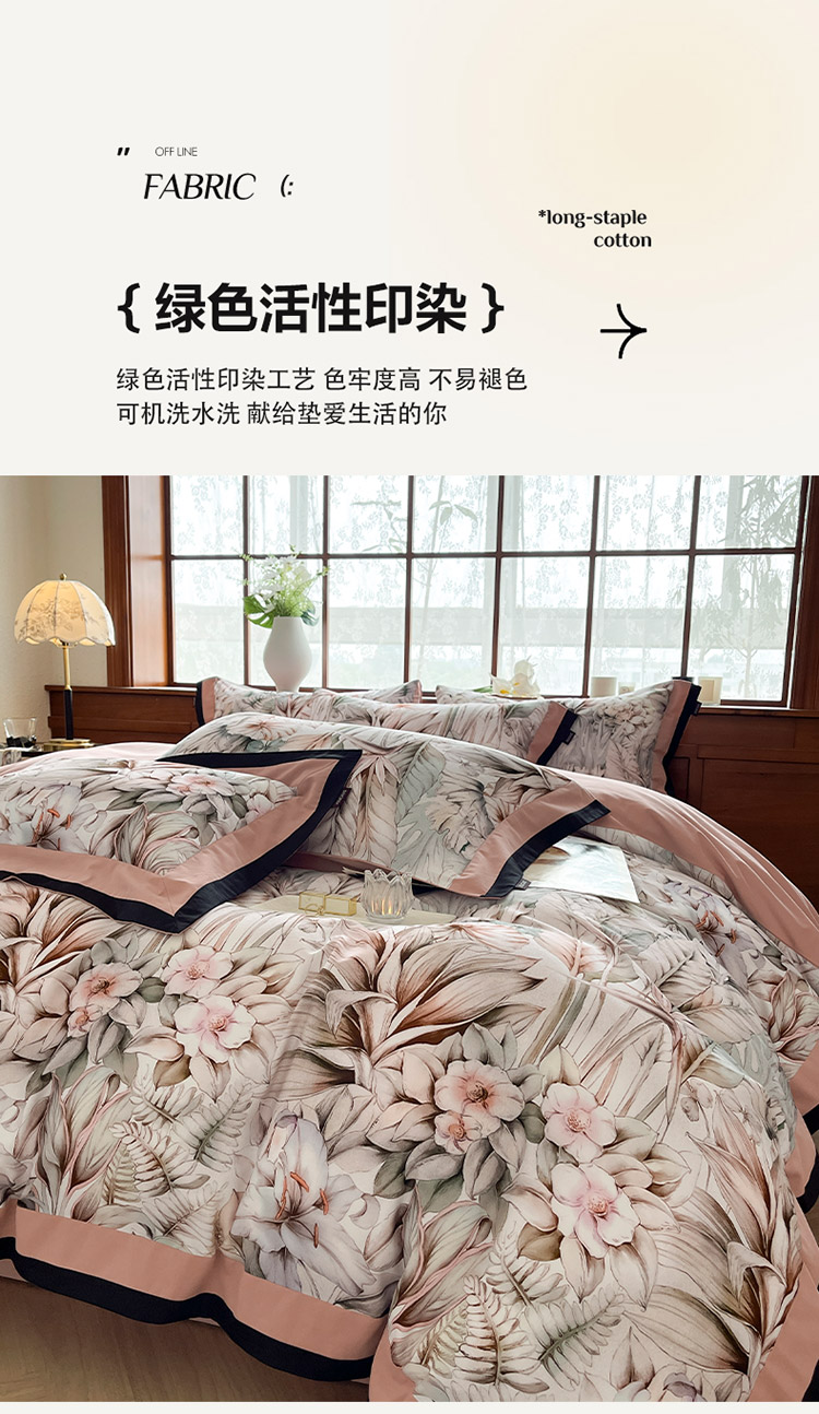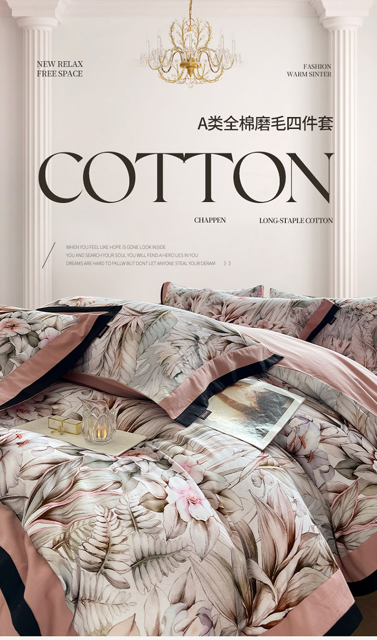 秋冬A类加厚纯棉磨毛四件套保暖活性印花轻奢全棉被套床单床笠款床上用品 花莫里