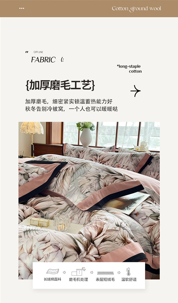 商品名称:秋冬A类加厚纯棉磨毛四件套保暖活性印花轻奢全棉被套床单床笠款床上用品 花莫里