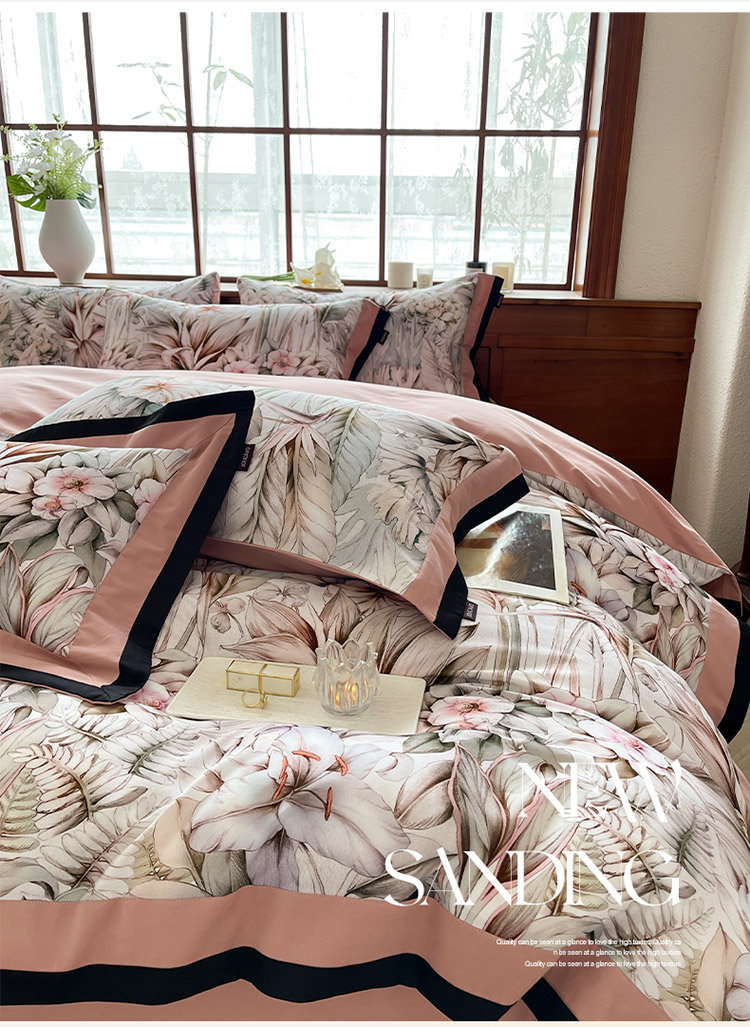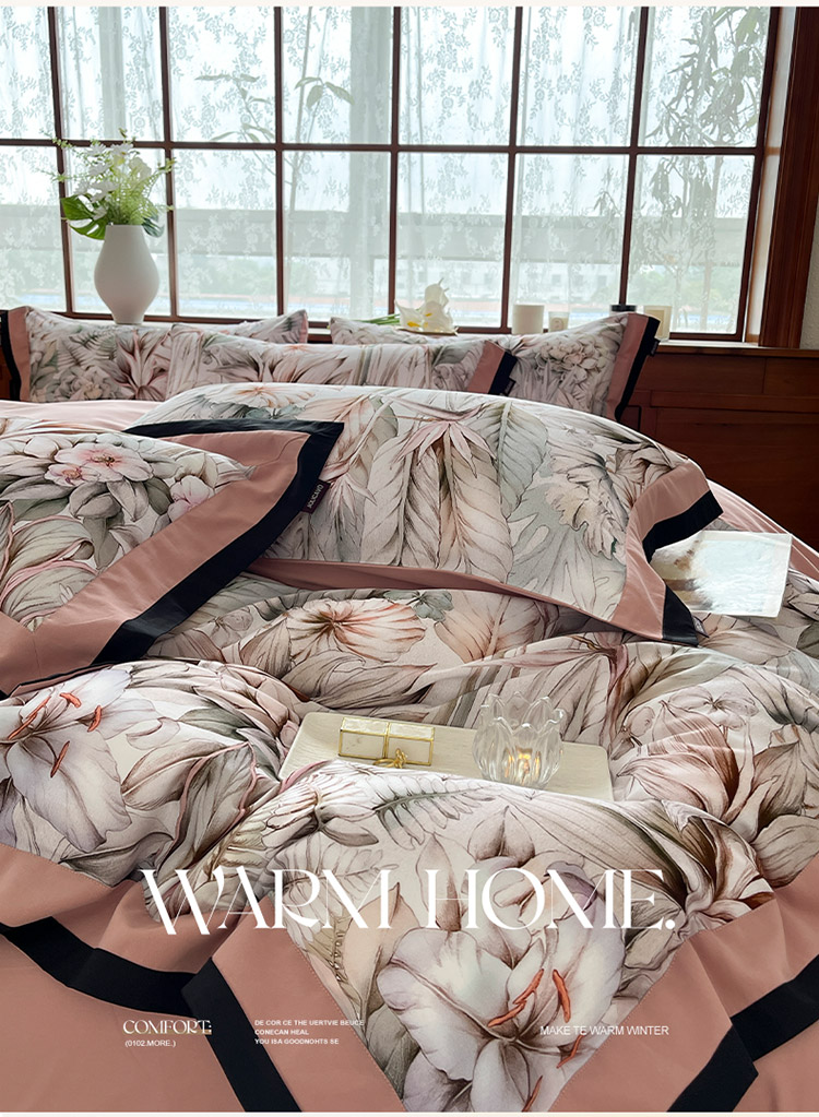 (总)乔利卡沃 2025秋冬季A类加厚全棉磨毛四件套纯棉保暖美式轻奢长绒棉数码印花高端床上用品,花弄影-黄,花弄影-蓝,花弄影-米,花弄影-紫
