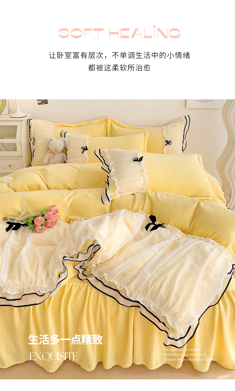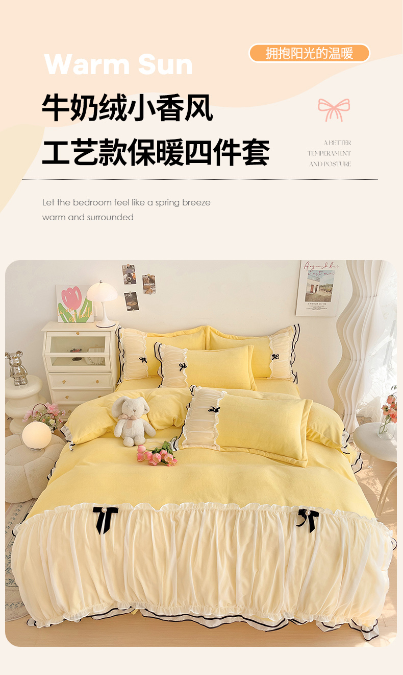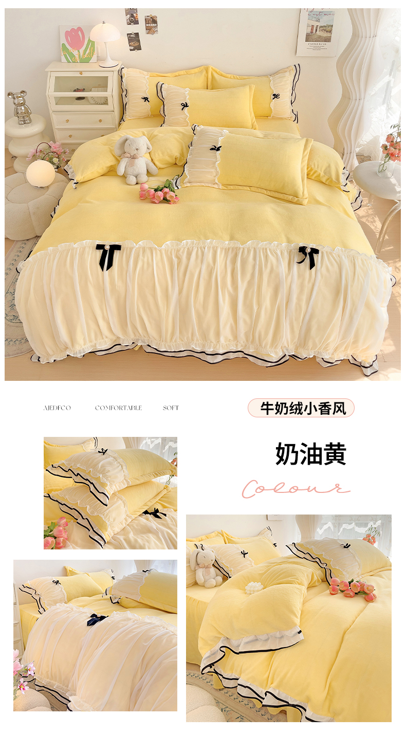 当前位置: 91家纺网 > 商品网购 > 床品套件 > 四件套 > 牛奶绒四件套 > 包小包 2024新款210g牛奶绒小香风四件套 小香风-奶油黄