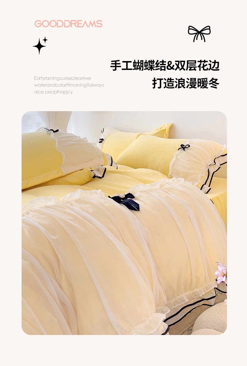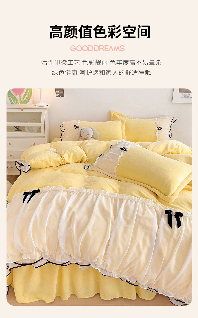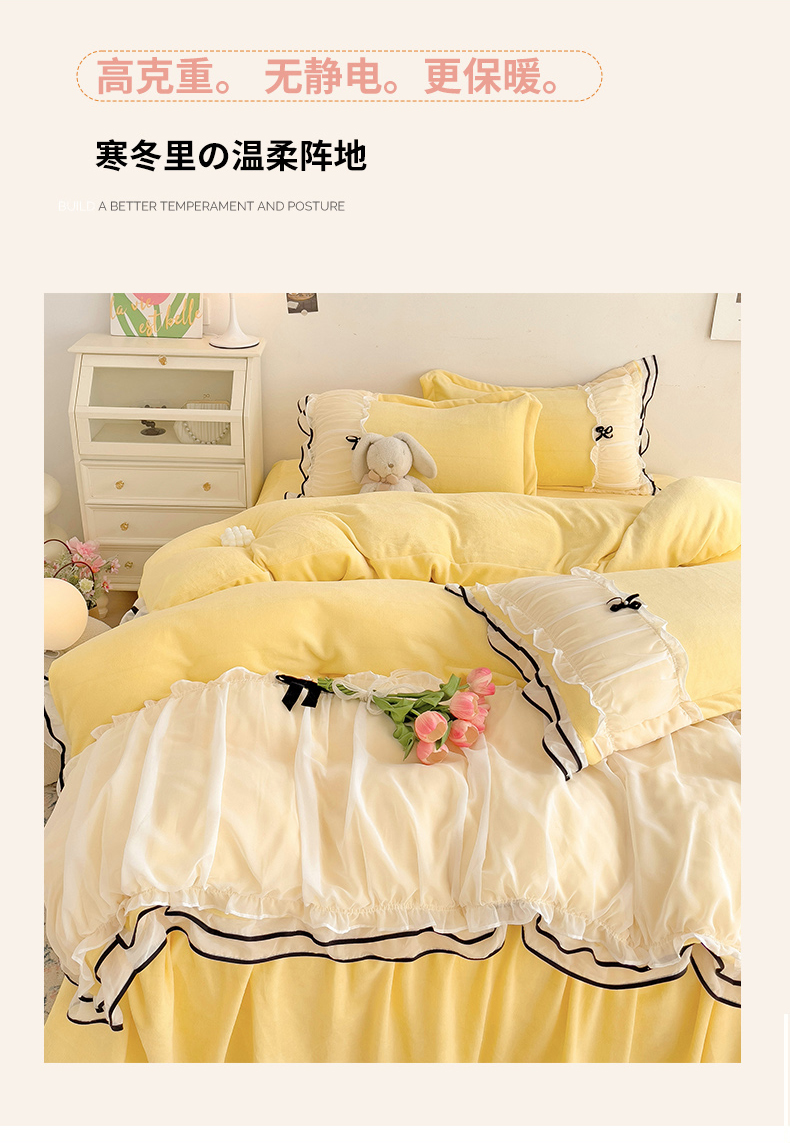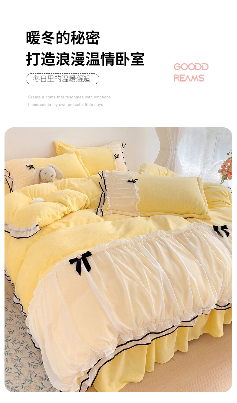 当前位置: 91家纺网 > 商品网购 > 床品套件 > 四件套 > 牛奶绒四件套 > 包小包 2024新款210g牛奶绒小香风四件套 小香风-奶油黄