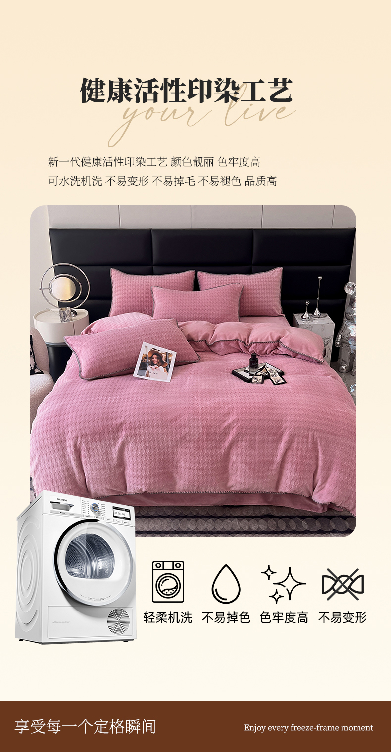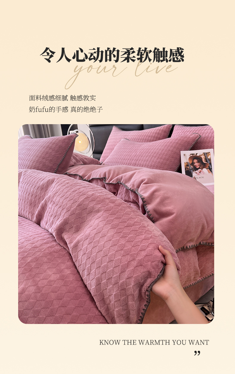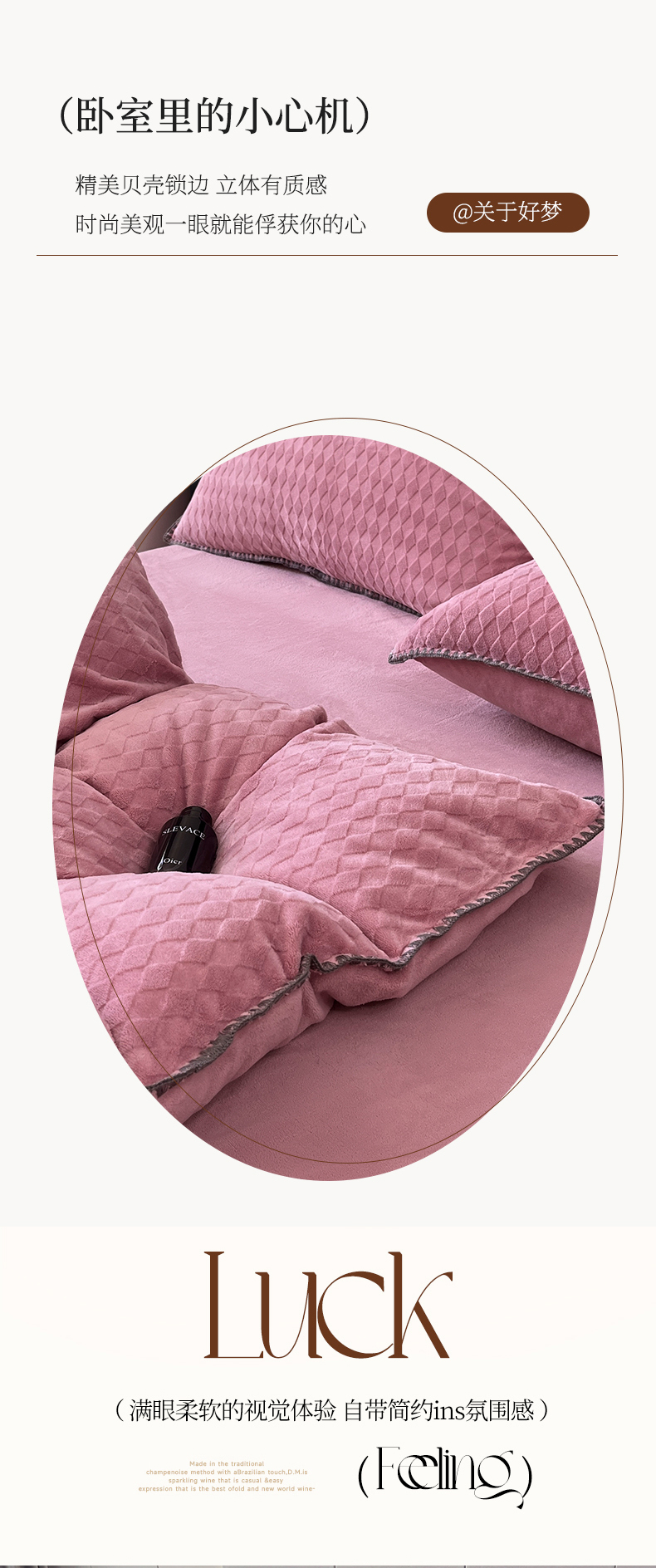 当前位置: 91家纺网 > 商品网购 > 床品套件 > 四件套 > 雕花绒四件套 > 菡宝 2024新款贝壳边无印风230g雕花绒床单四件套 菱形格-豆粉