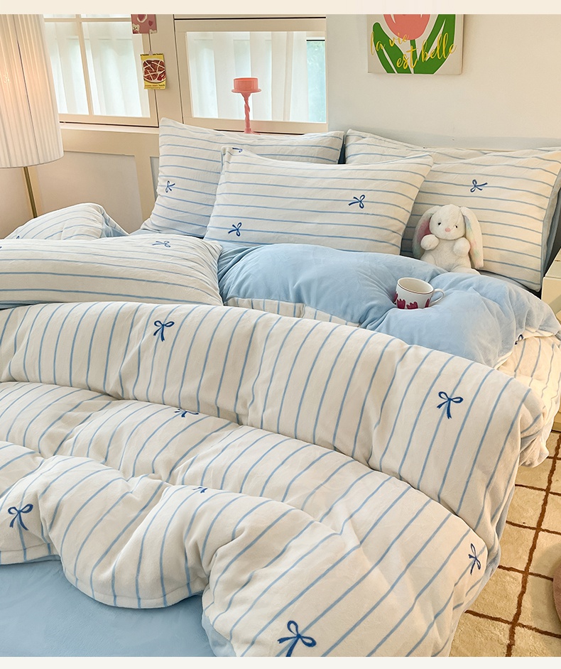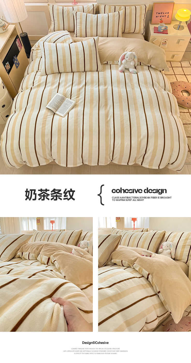 商品名称:寐眠 2024新款高克重印花牛奶绒四件套条纹风格一 时代奶茶