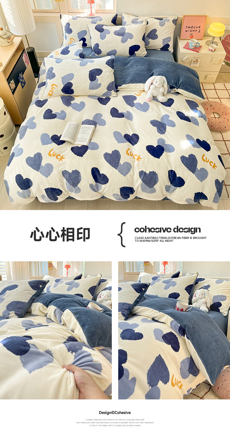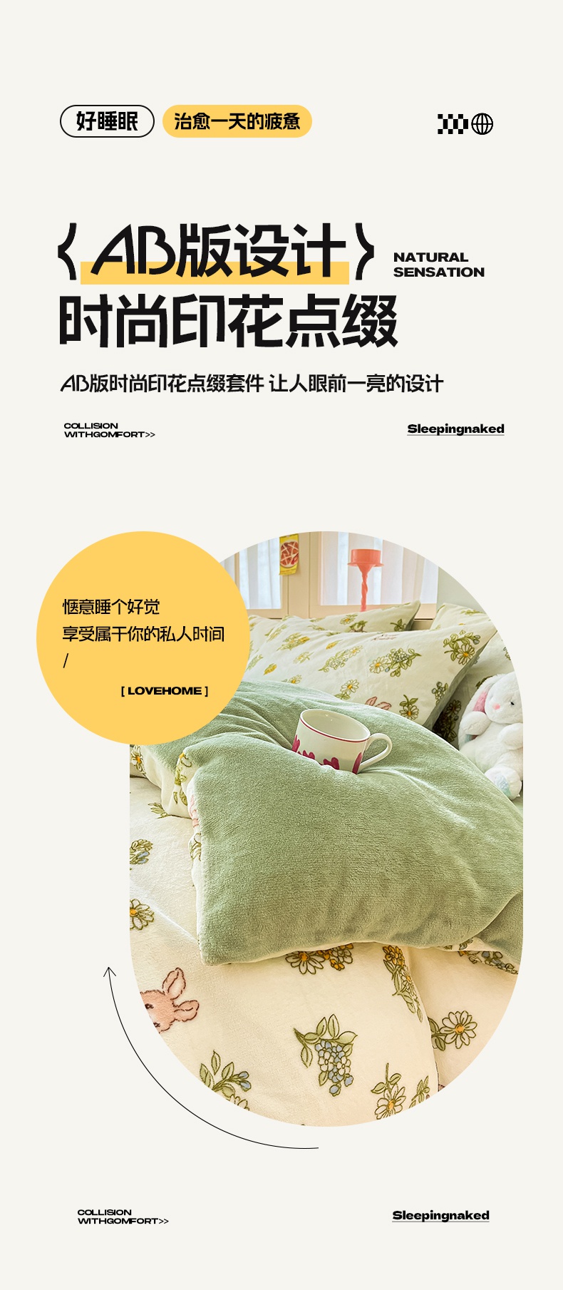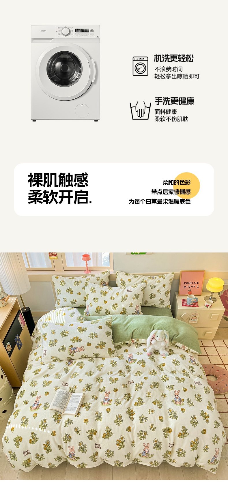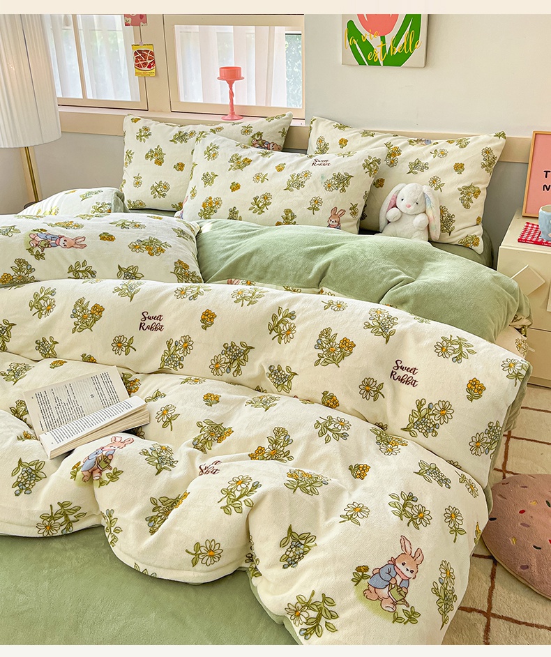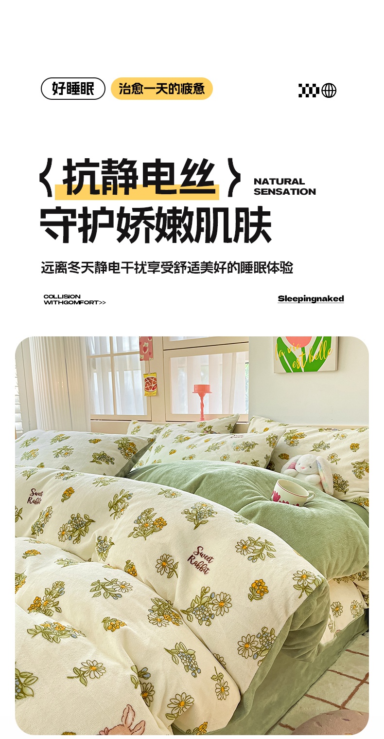 寐眠 2024新款高克重印花牛奶绒四件套风格一 采花小兔