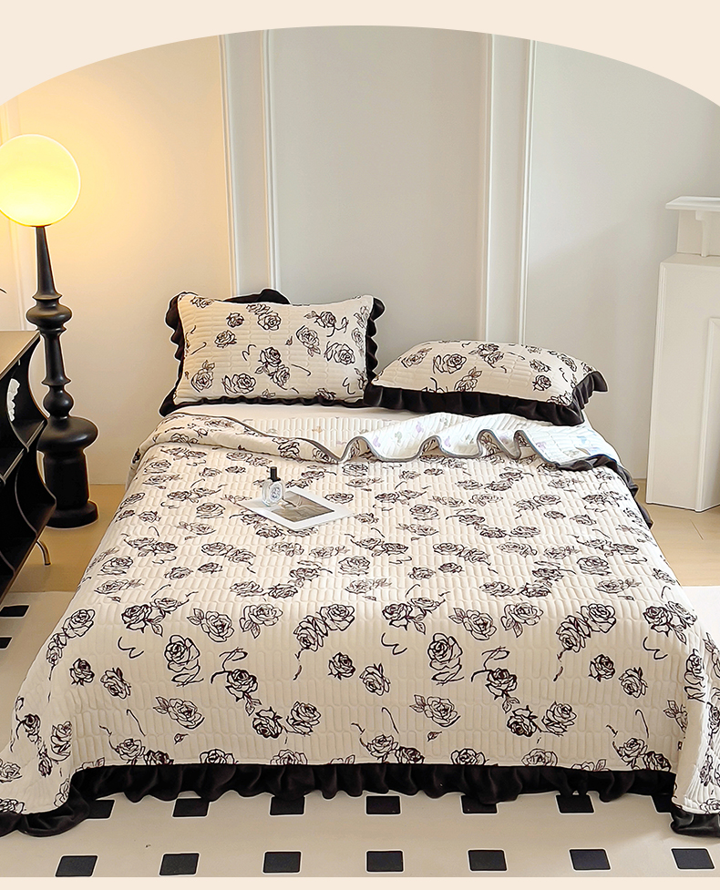 美梦家纺 2024新款牛奶绒花边款夹棉床盖三件套花边- 蝴蝶结