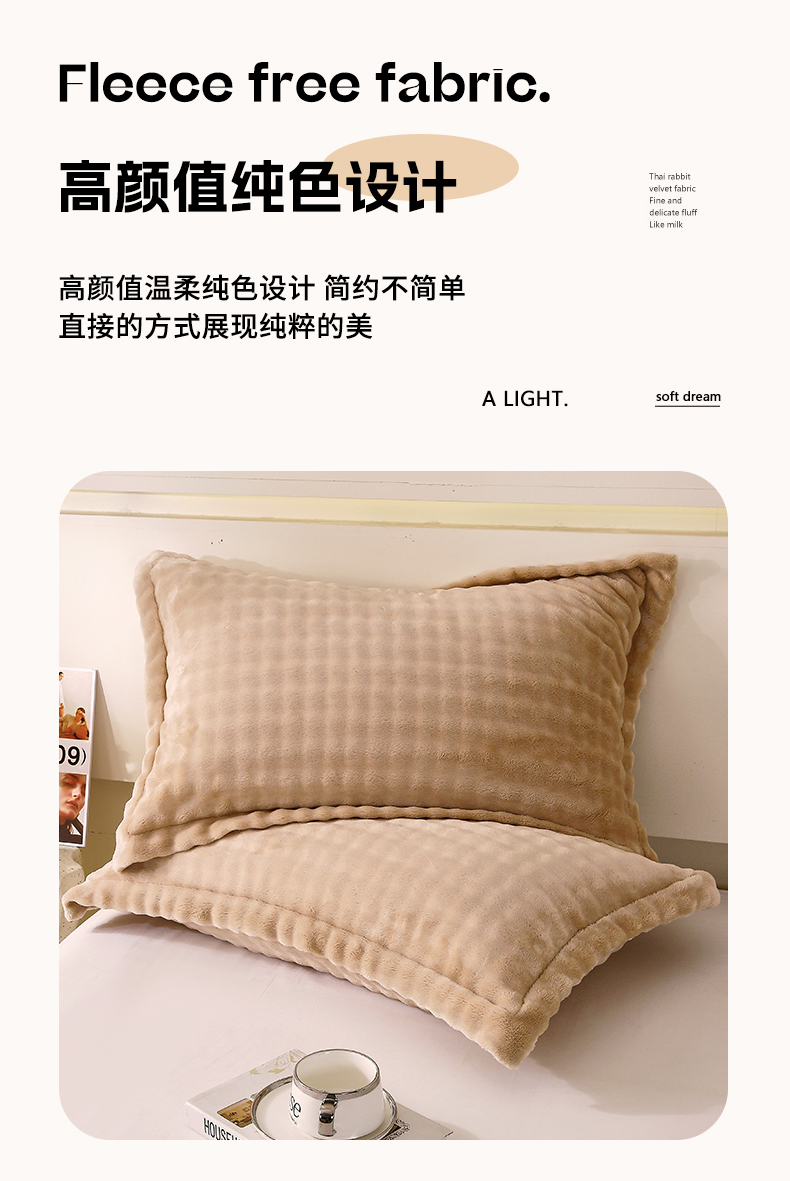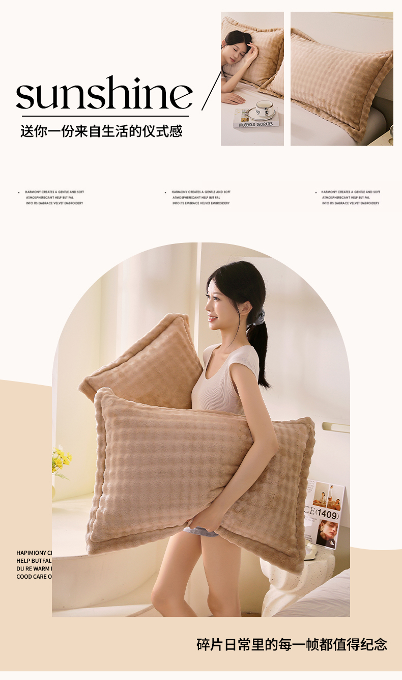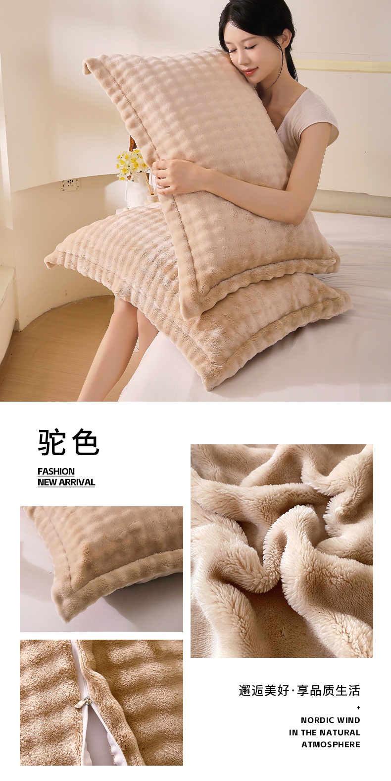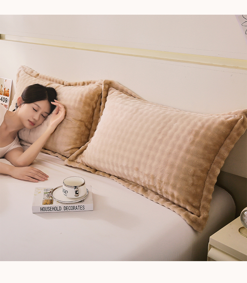 商品名称:芯宜佳 2024新款高克重泡泡牛奶绒枕套 驼色