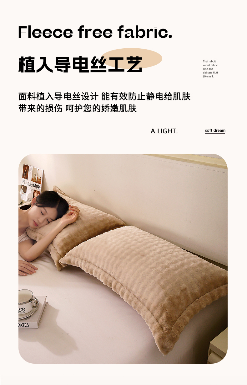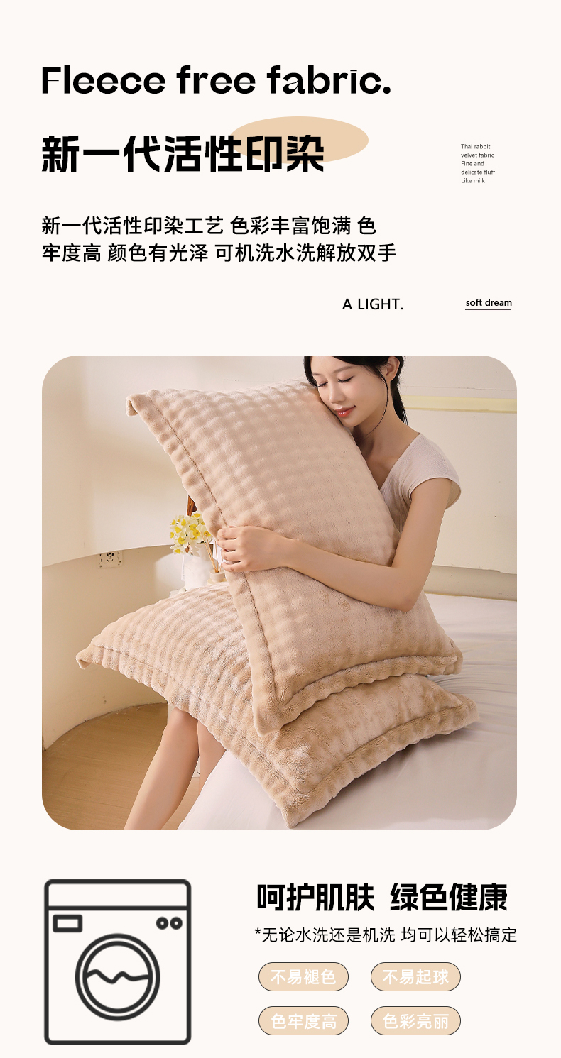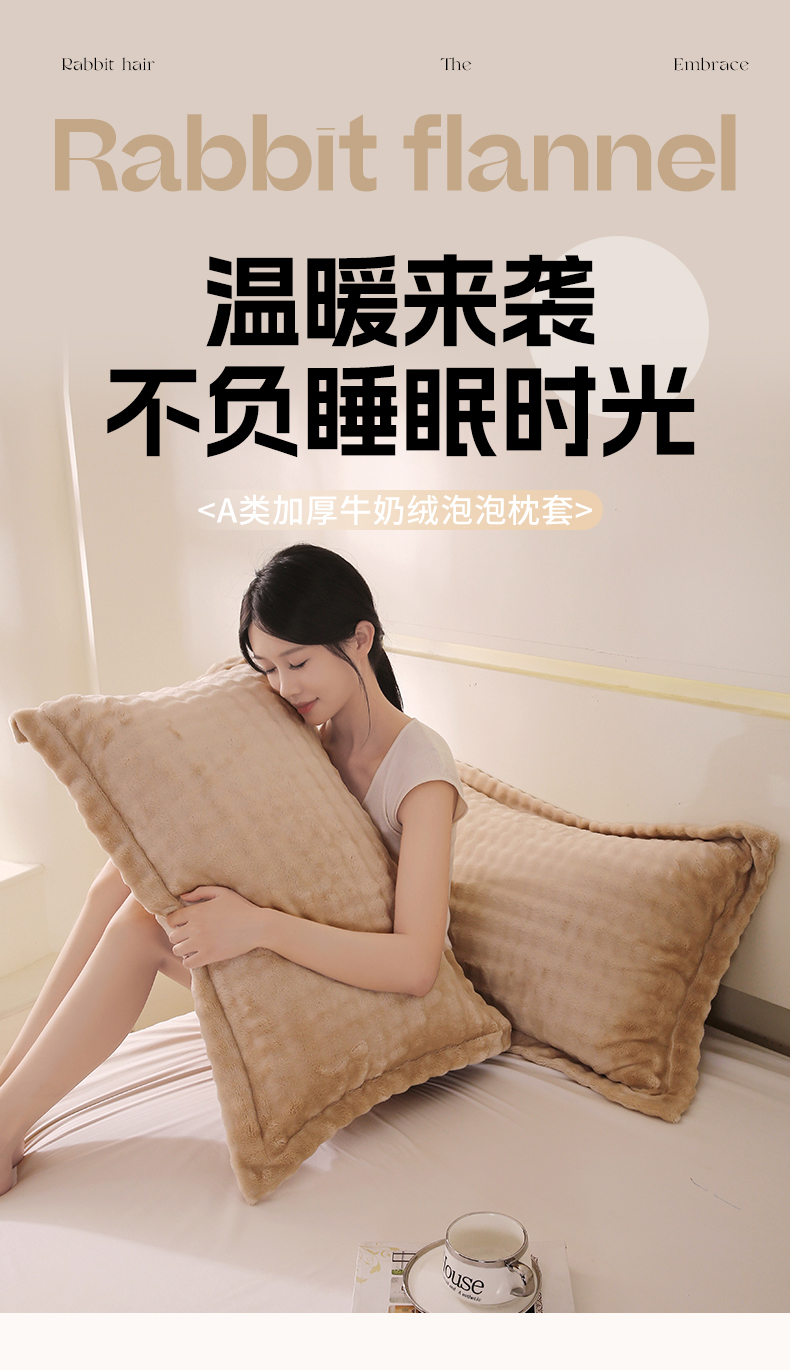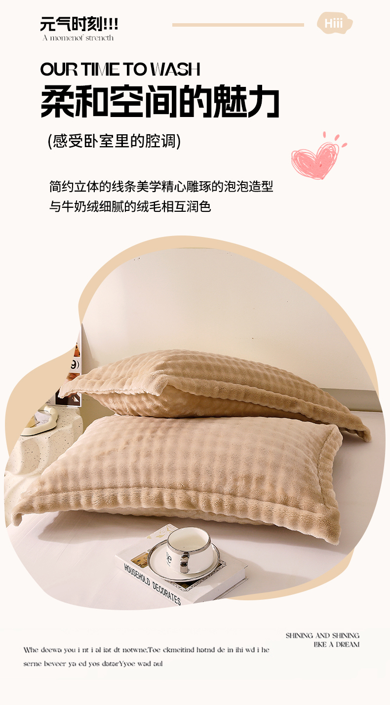商品名称:芯宜佳 2024新款高克重泡泡牛奶绒枕套 驼色