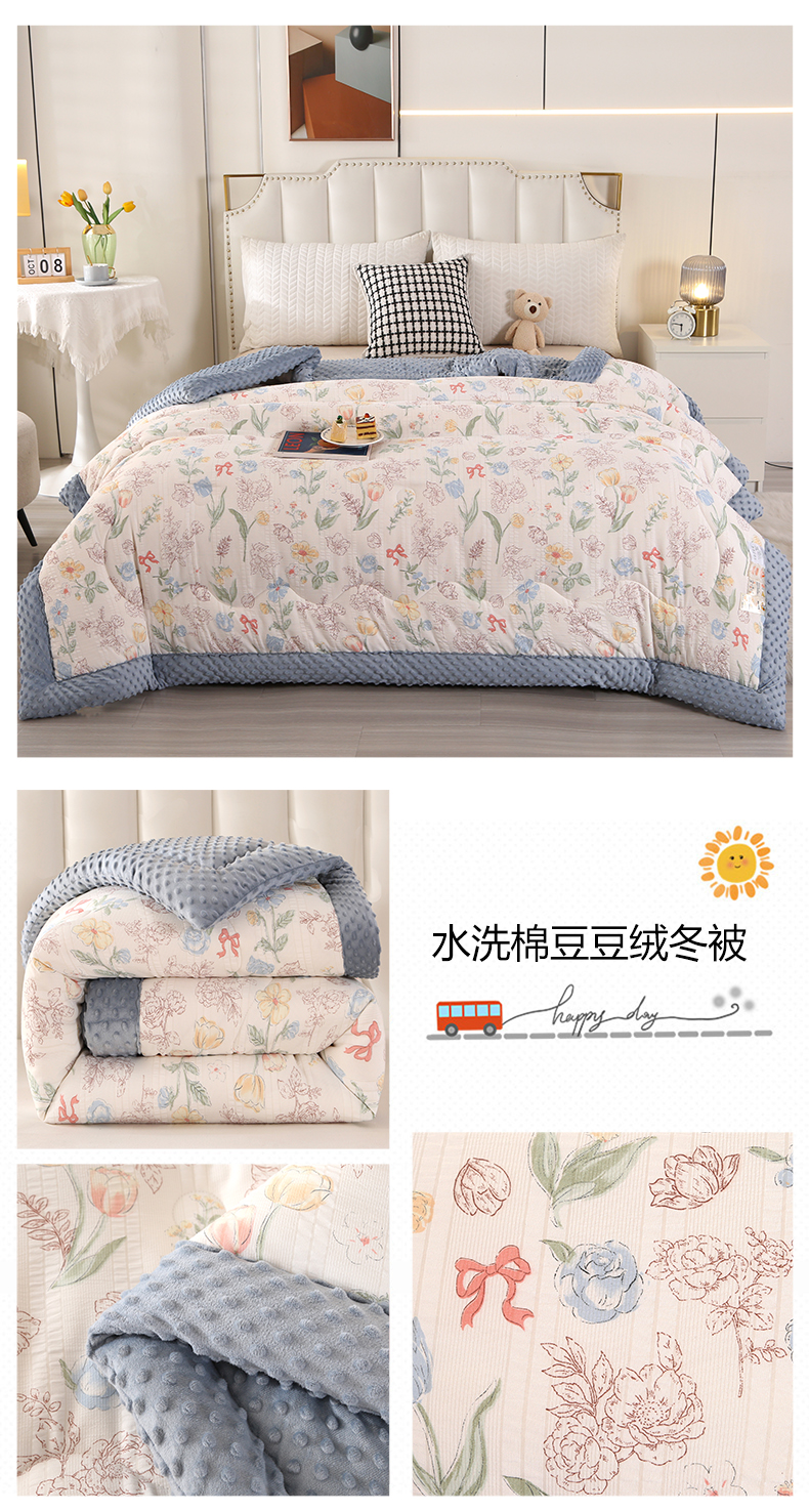 欧夏被业 2024新款冬被水洗棉豆豆被芯豆豆绒被子学生春秋被供直播 莫奈