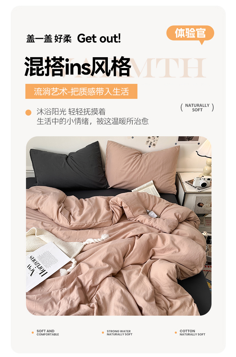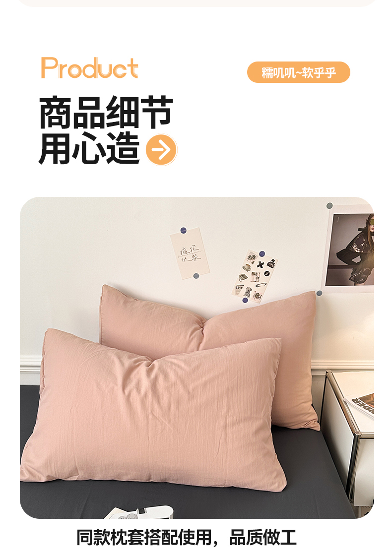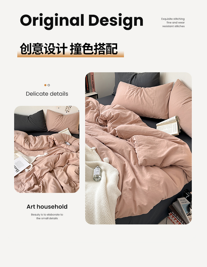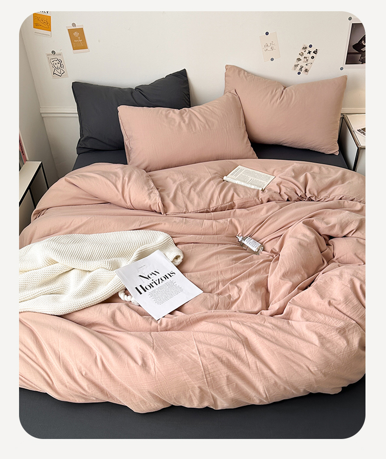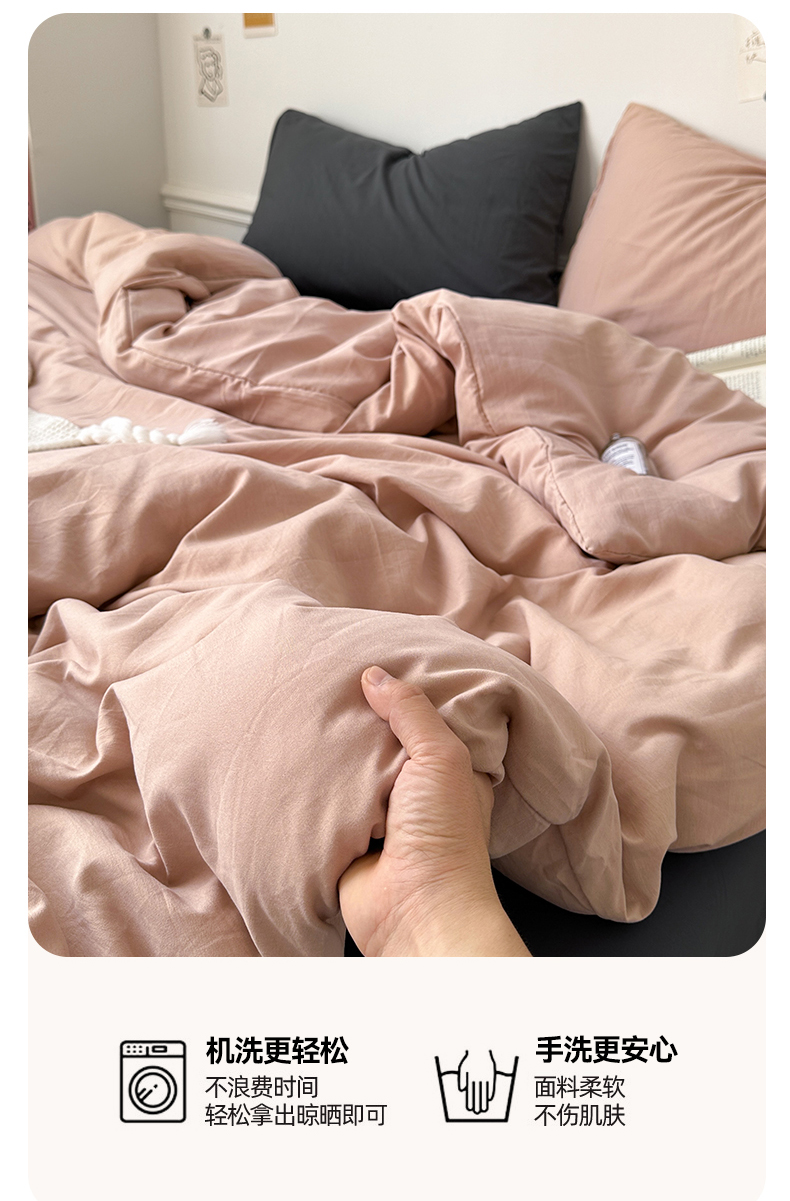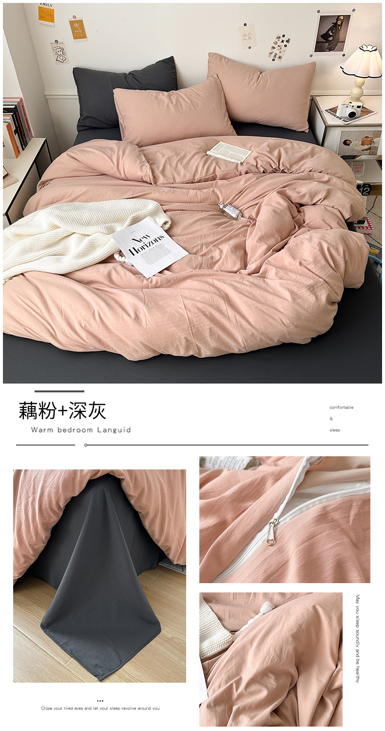 当前位置: 91家纺网 > 商品网购 > 床品套件 > 四件套 > 水洗棉四件套 > 多品家纺 2024新款超柔混搭水洗棉四件套 藕粉+深灰