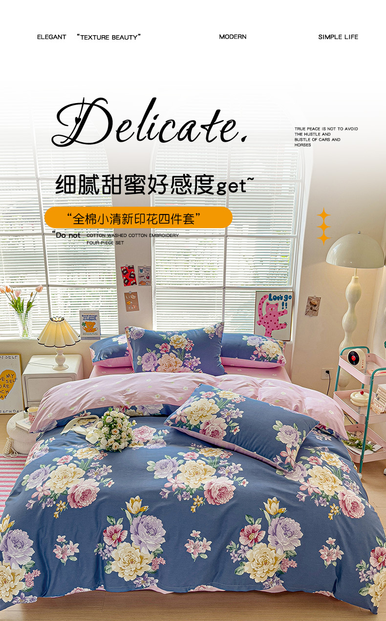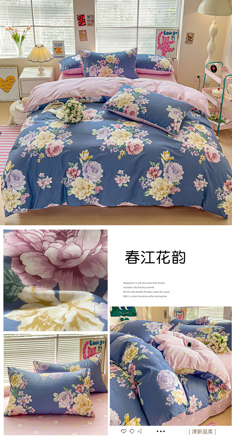 当前位置: 91家纺网 > 商品网购 > 床品套件 > 四件套 > 全棉普通四件套 > 优选良品 2025直播爆款全棉12868印花四件套纯棉学生三件套床笠春江花韵