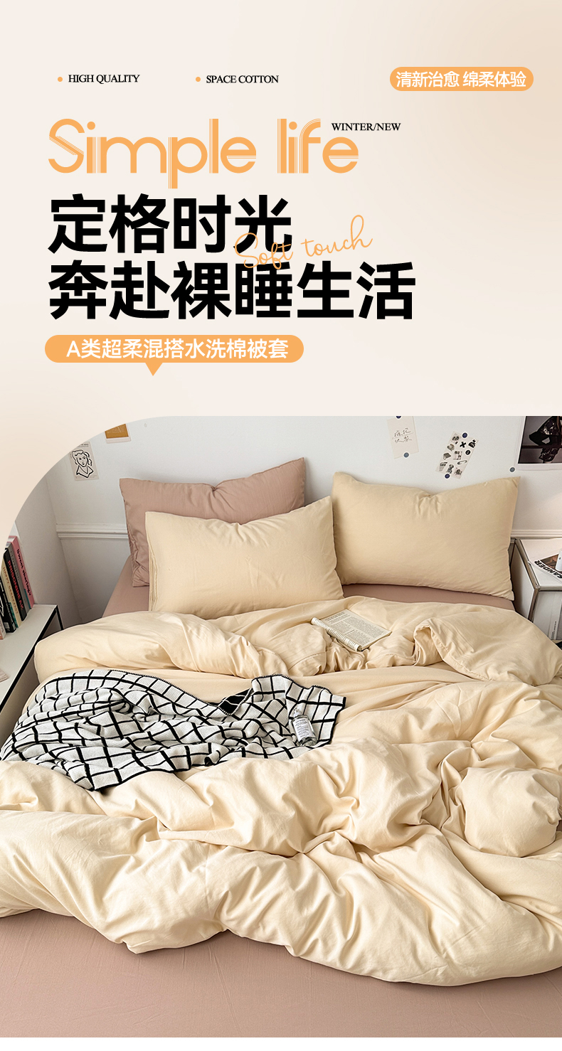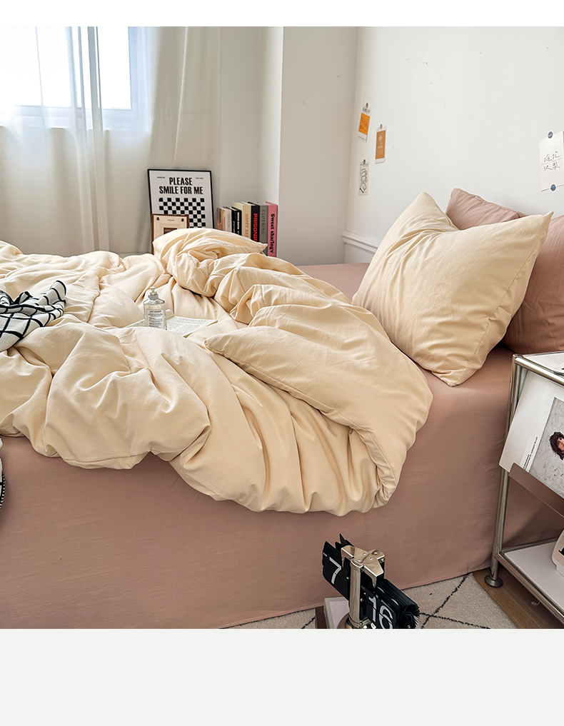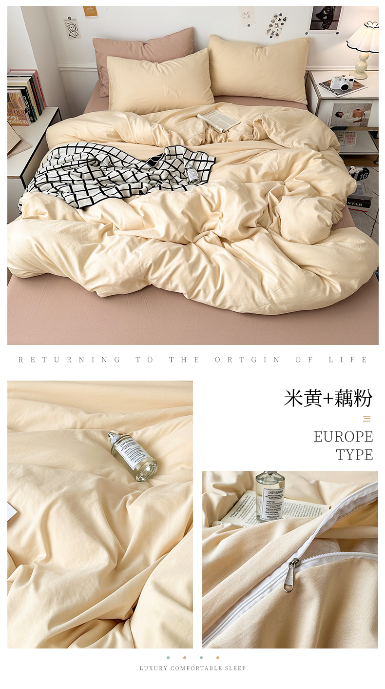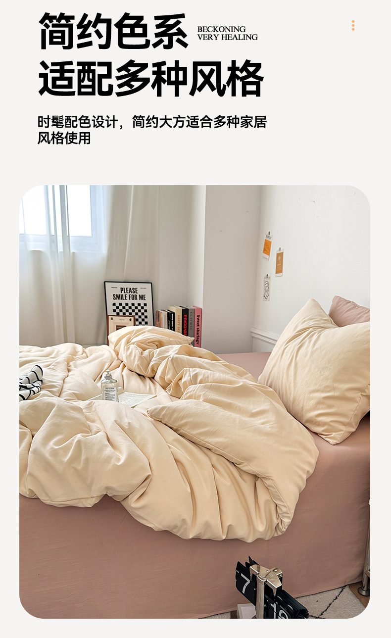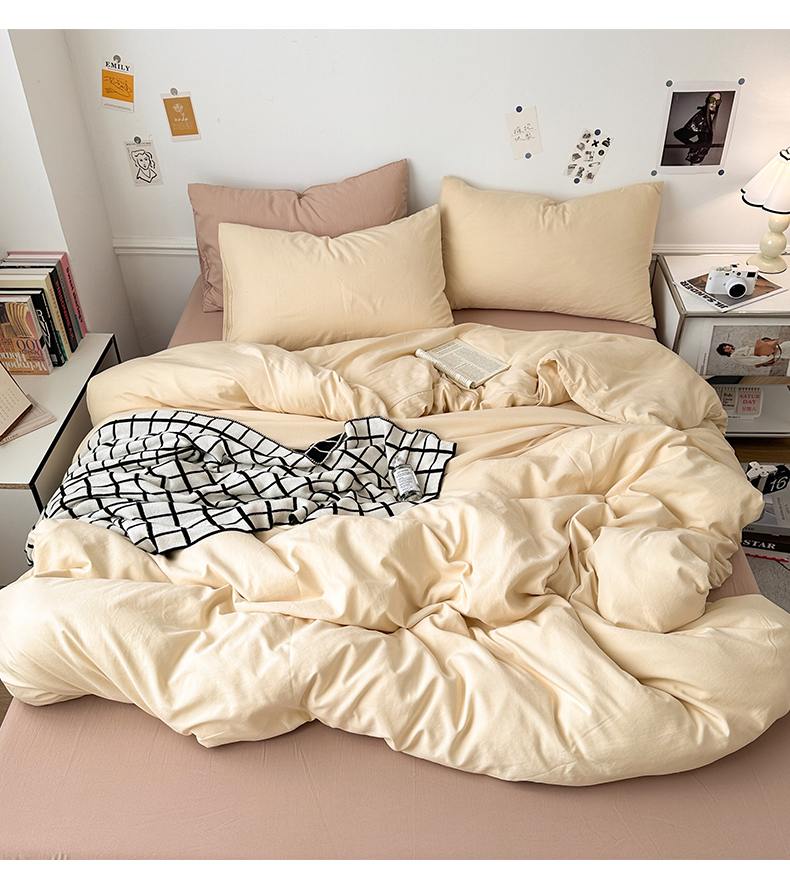 • 91家纺网 家纺一手货源 找家纺 多品家纺 2024新款超柔混搭水洗棉四件套--单被套 米黄+藕粉