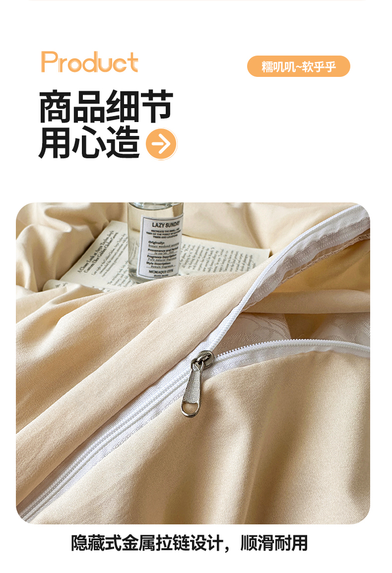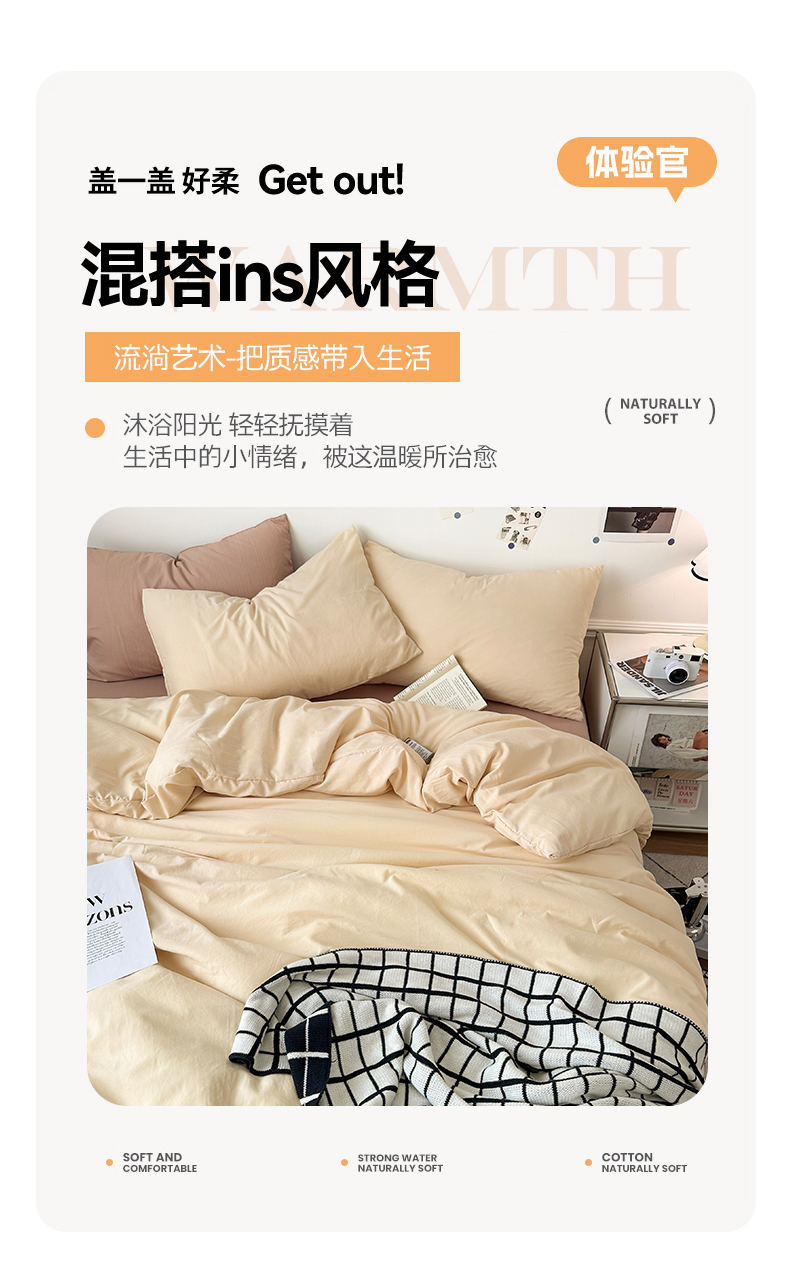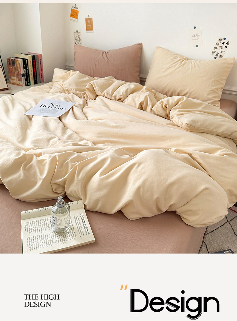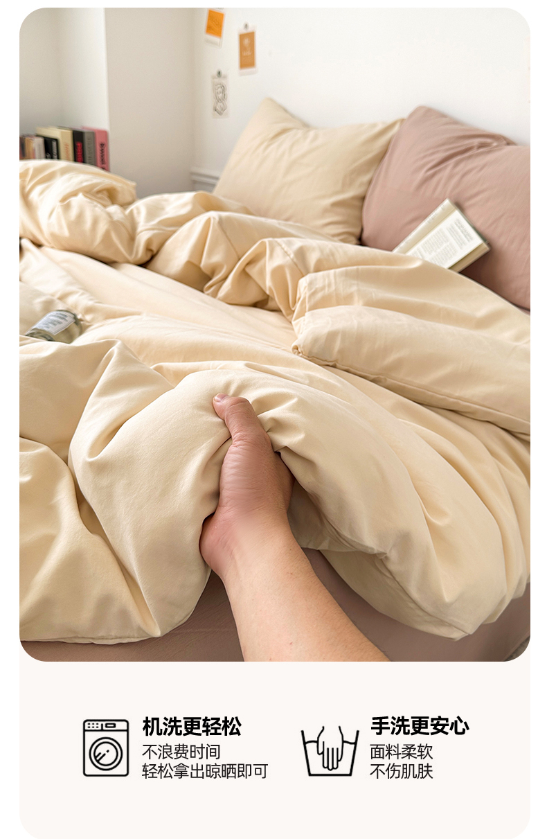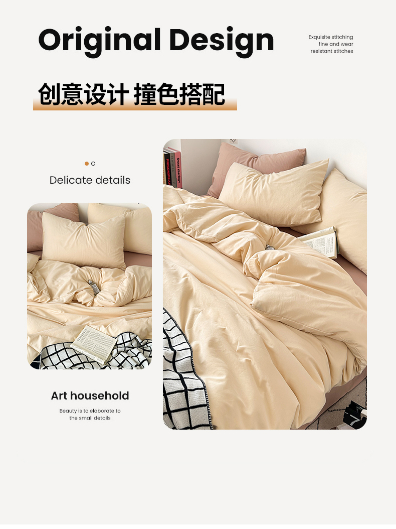 • 91家纺网 家纺一手货源 找家纺 多品家纺 2024新款超柔混搭水洗棉四件套--单被套 米黄+藕粉