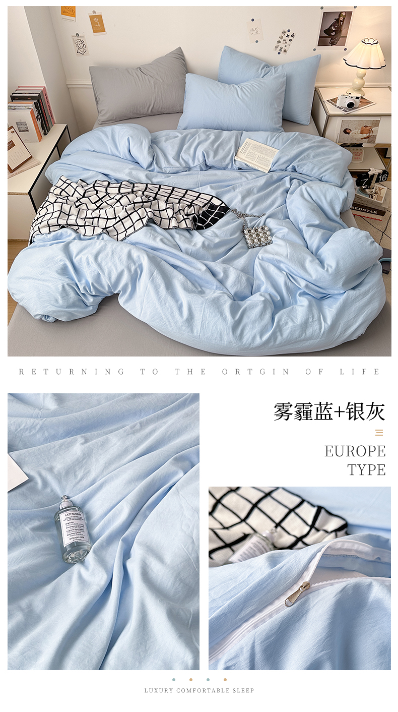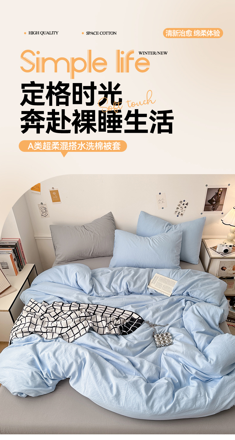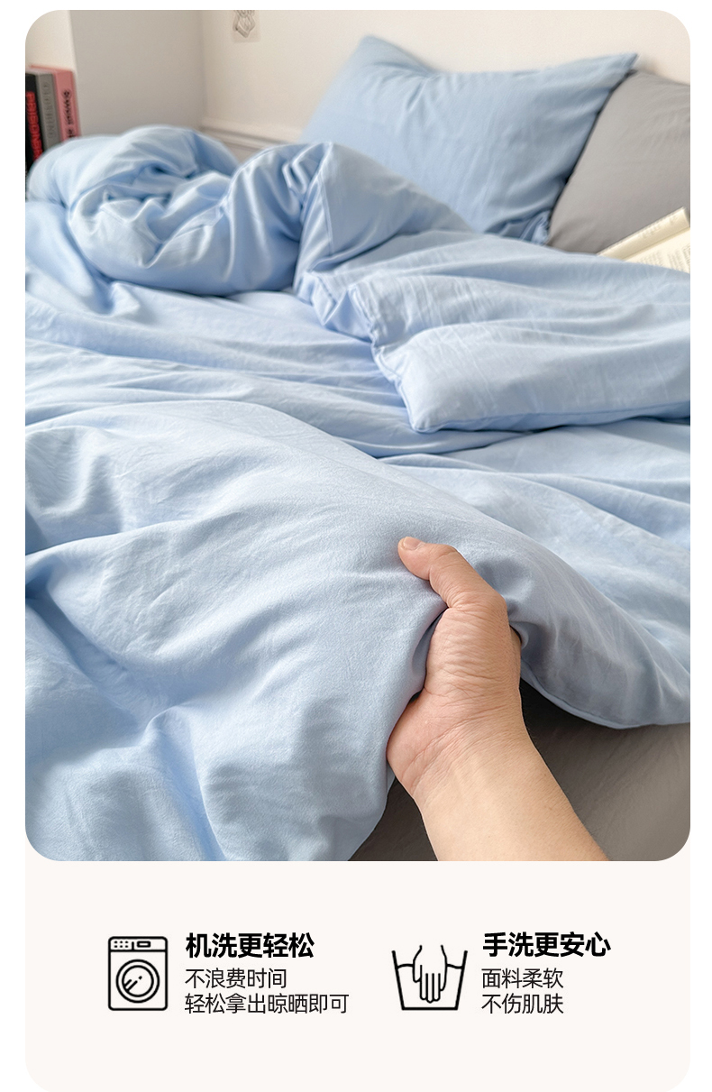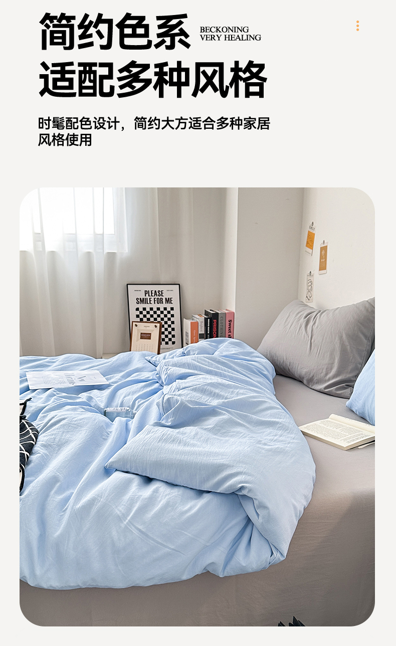 • 91家纺网 家纺一手货源 找家纺 多品家纺 2024新款超柔混搭水洗棉四件套--单被套 雾霾蓝+银灰
