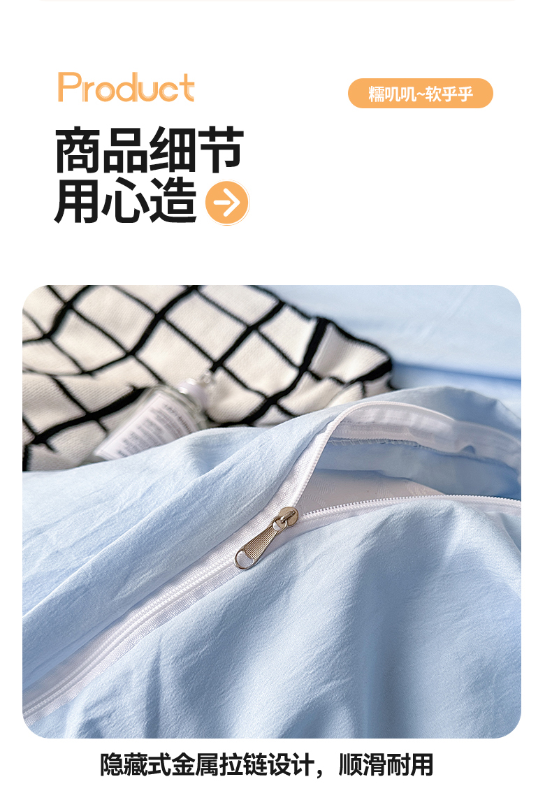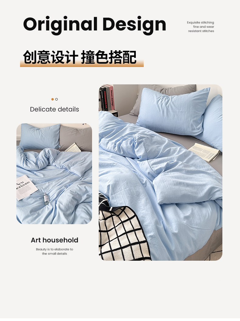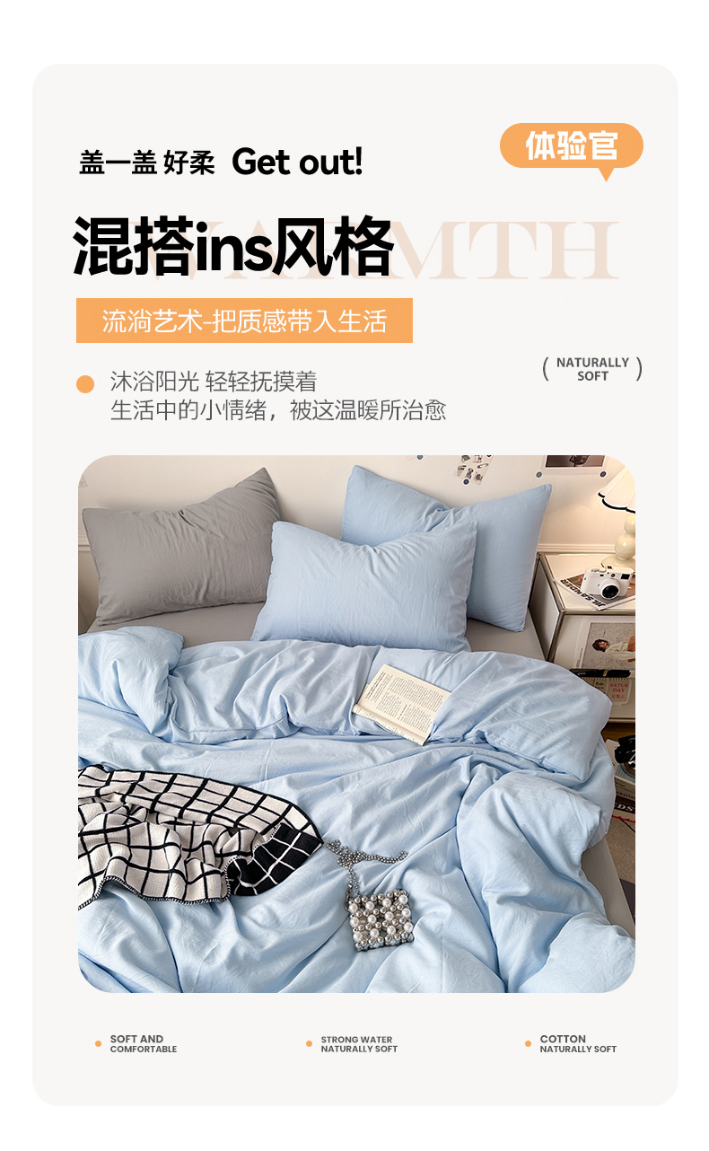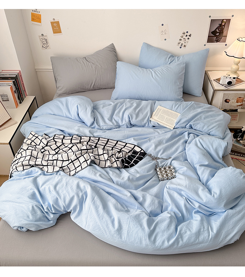 • 91家纺网 家纺一手货源 找家纺 多品家纺 2024新款超柔混搭水洗棉四件套--单被套 雾霾蓝+银灰