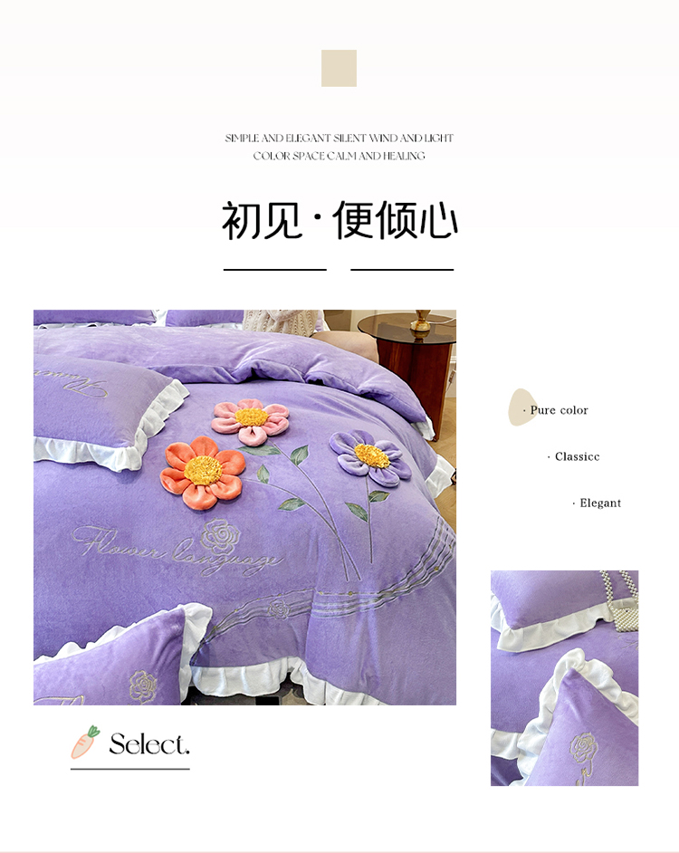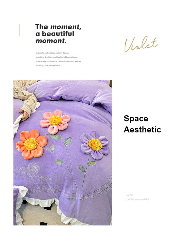 9斤高端韩版少女心法式公主风贴布绣花牛奶绒四件套小清新绒兔毛绒法莱绒床盖被套丝绒兔毛绒法莱绒床盖被套 锦上添花-梦幻紫