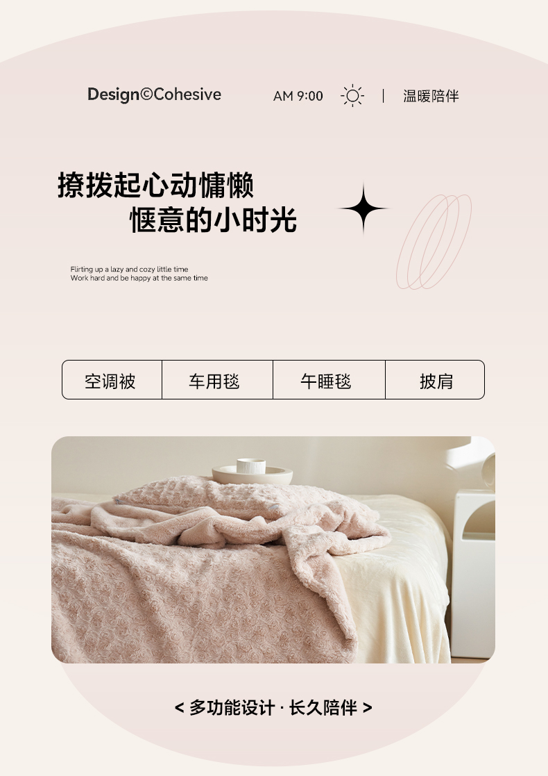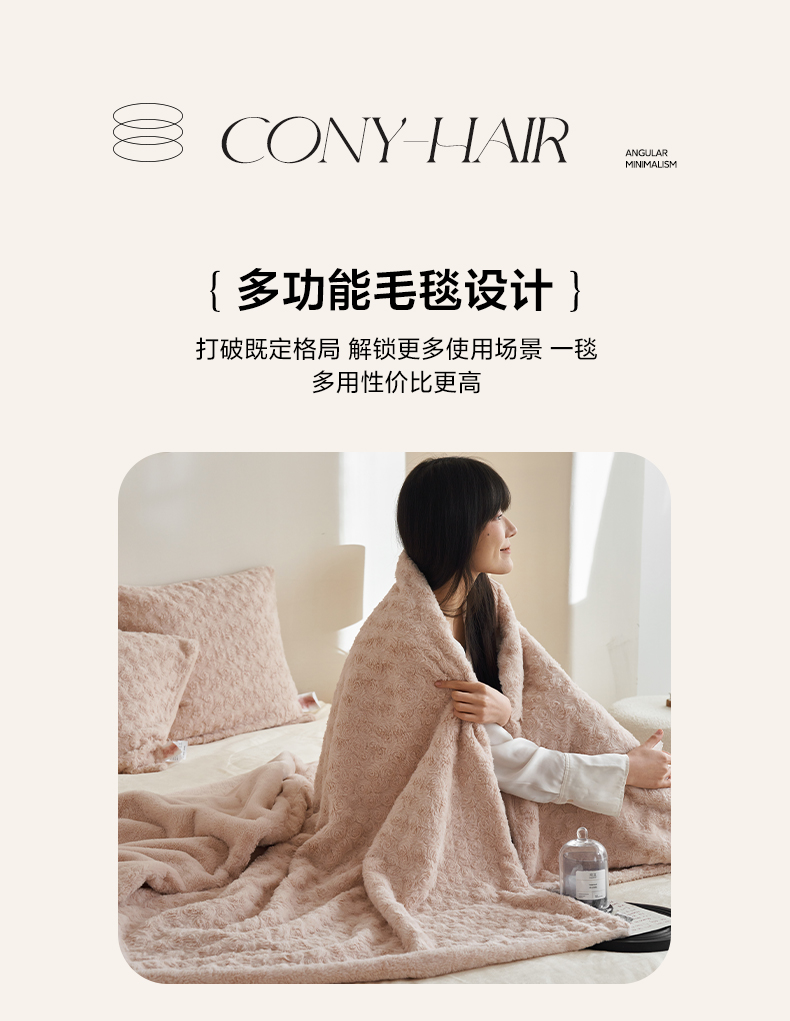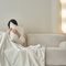 秀色家纺 2025新款A类双面300g兔毛加厚冬季盖毯沙发毯子办公室午睡小绒毯 朵拉奶油白