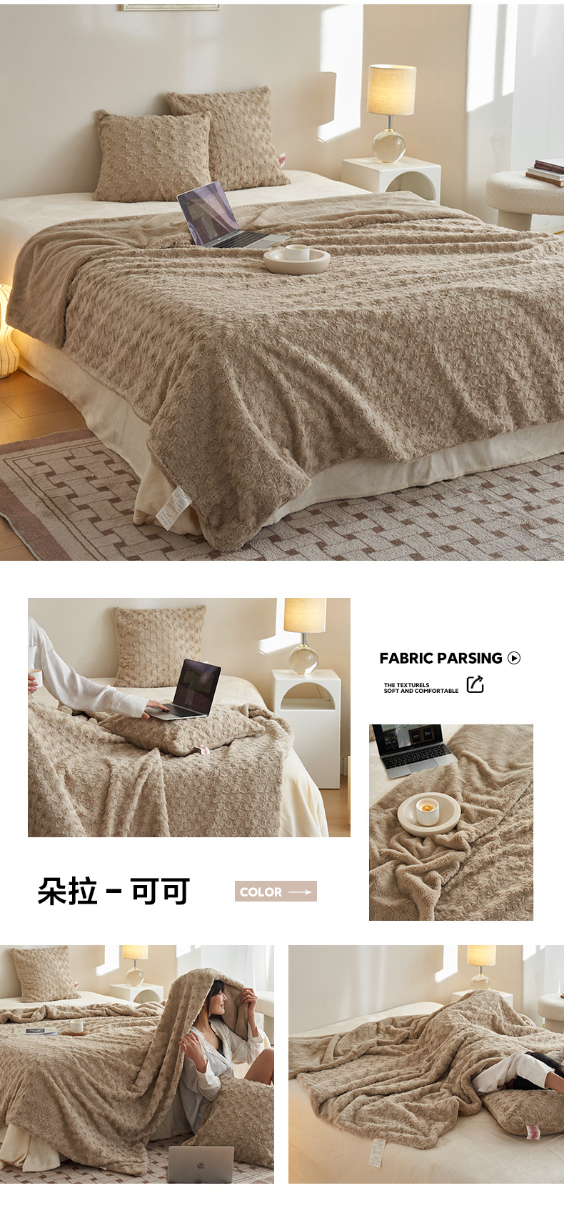 商品名称:秀色家纺 2025新款A类双面300g兔毛加厚冬季盖毯沙发毯子办公室午睡小绒毯 朵拉奶油白