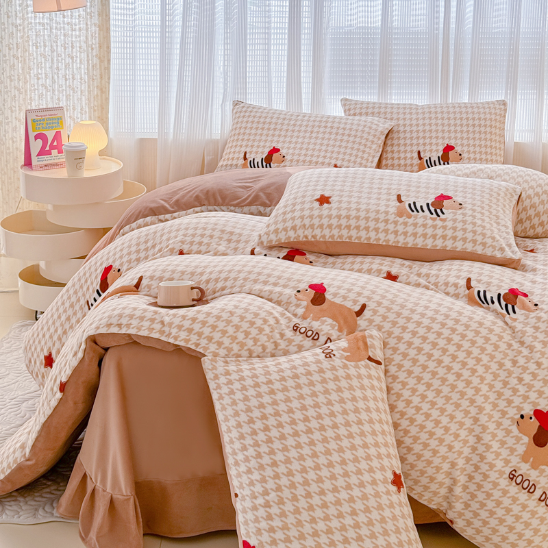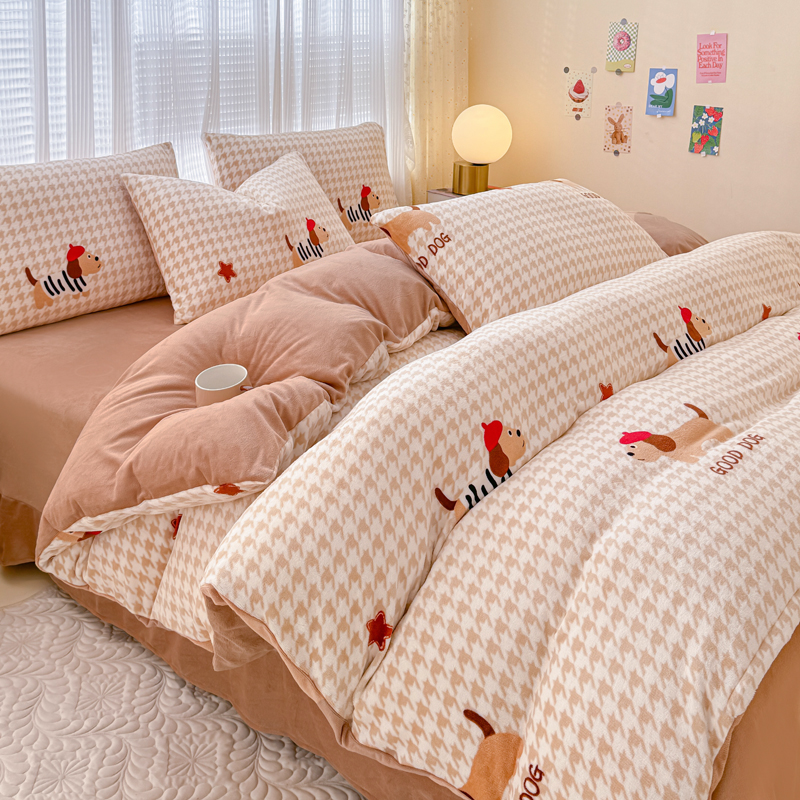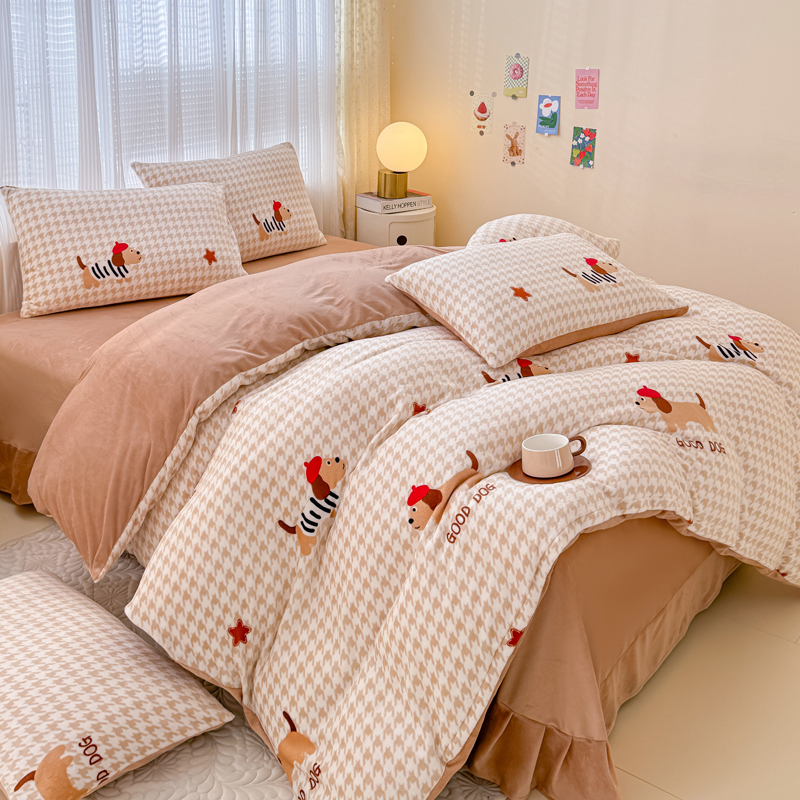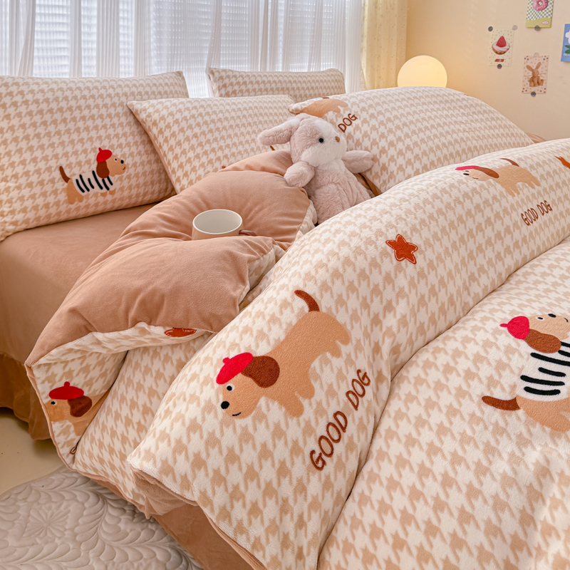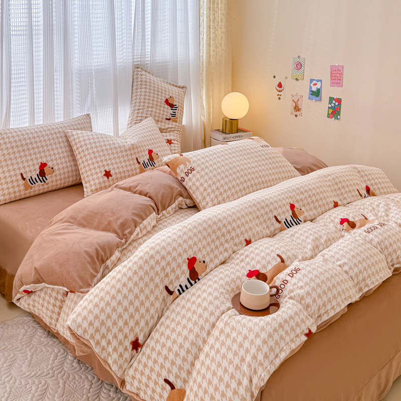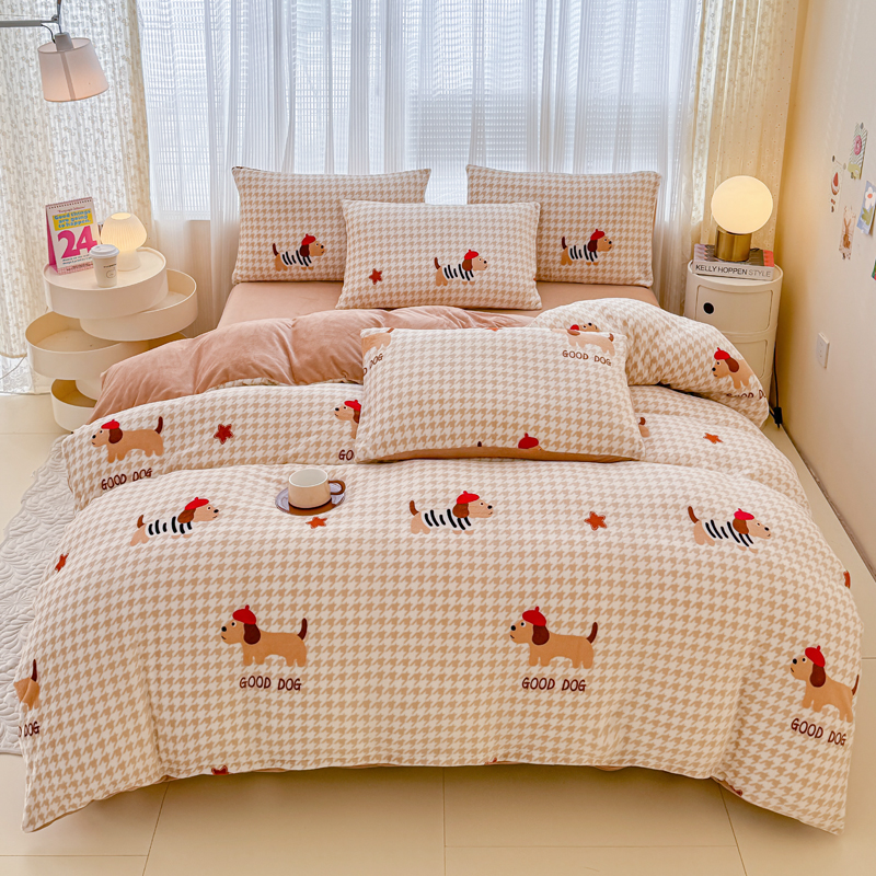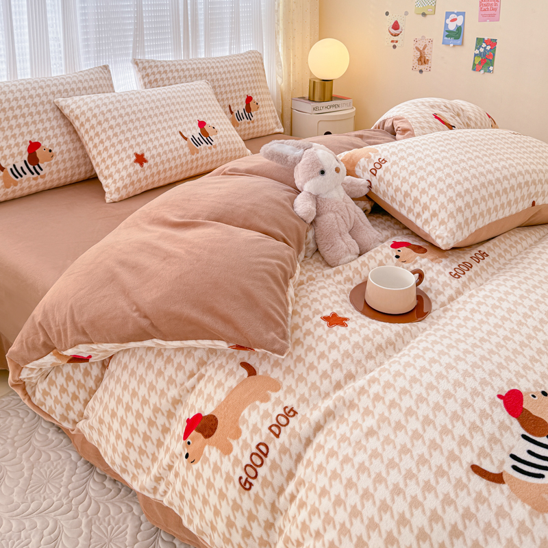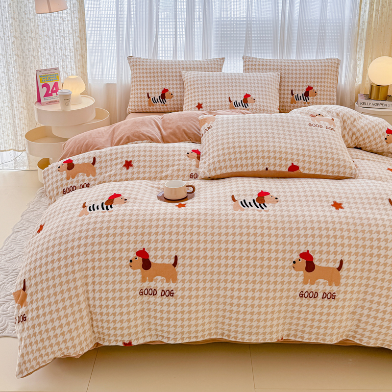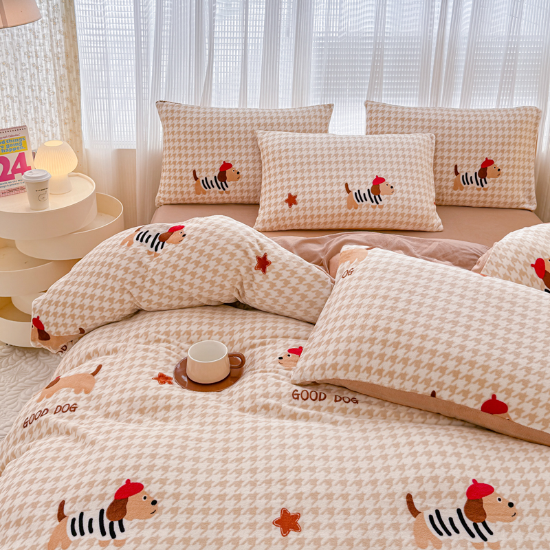 仟网汇 2024直播爆款跑量牛奶绒四件套 腊肠狗
