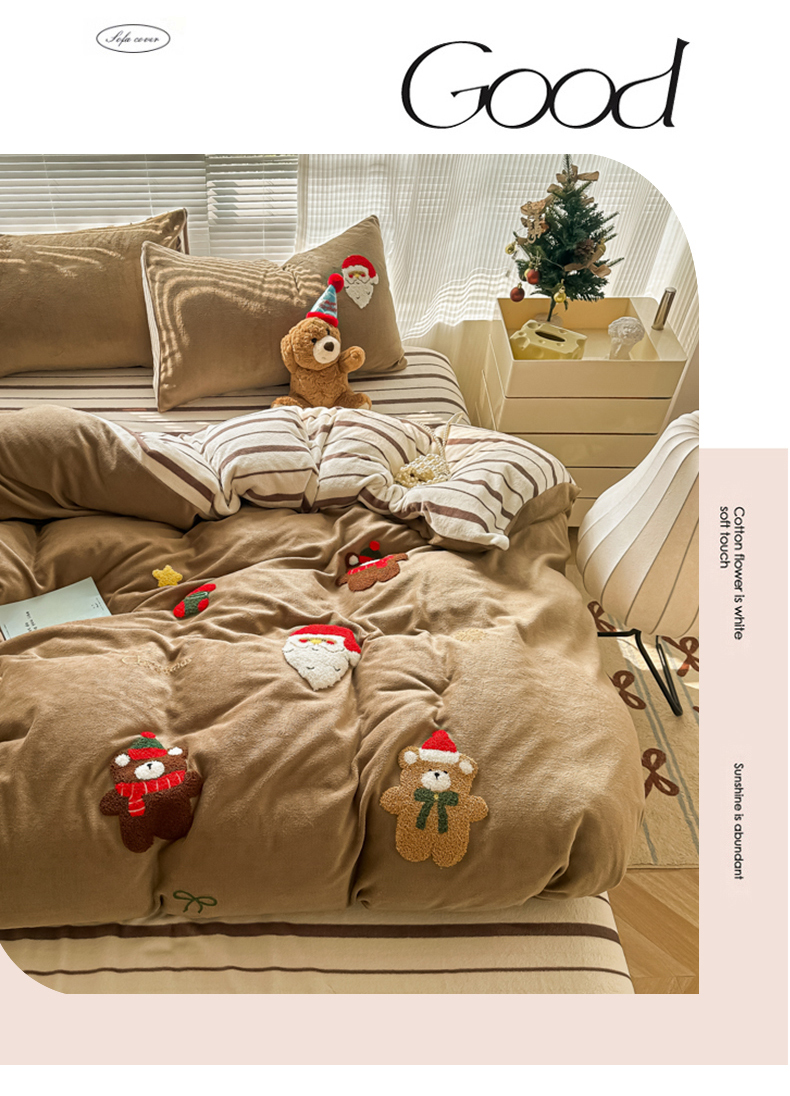 (总)子钦家纺 2025秋冬新款加厚牛奶绒撸猫感毛巾绣四件套-圣诞小熊,圣诞小熊-粉波点,圣诞小熊-奶波点,圣诞小熊-七彩爱心,圣诞小熊-七彩格,圣诞小熊-紫波点