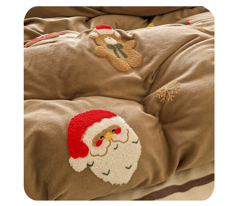 (总)子钦家纺 2024秋冬新款加厚牛奶绒散点大版毛巾绣床单床笠四件套-圣诞系列拍法二