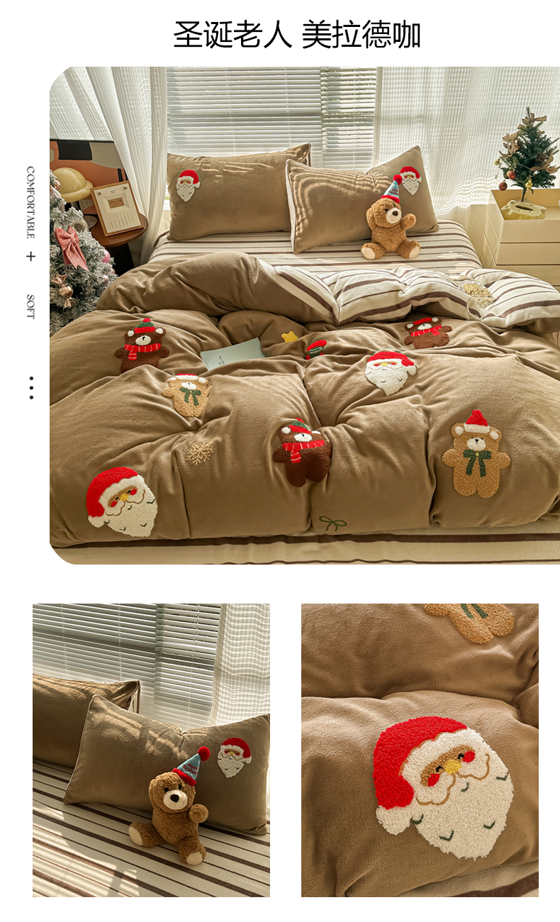 (总)子钦家纺 2025新款加厚牛奶绒四件套-圣诞小熊(风格二),圣诞老人-粉波点,圣诞老人-奶波点,圣诞老人-七彩爱心,圣诞老人-七彩格,圣诞老人-紫波点