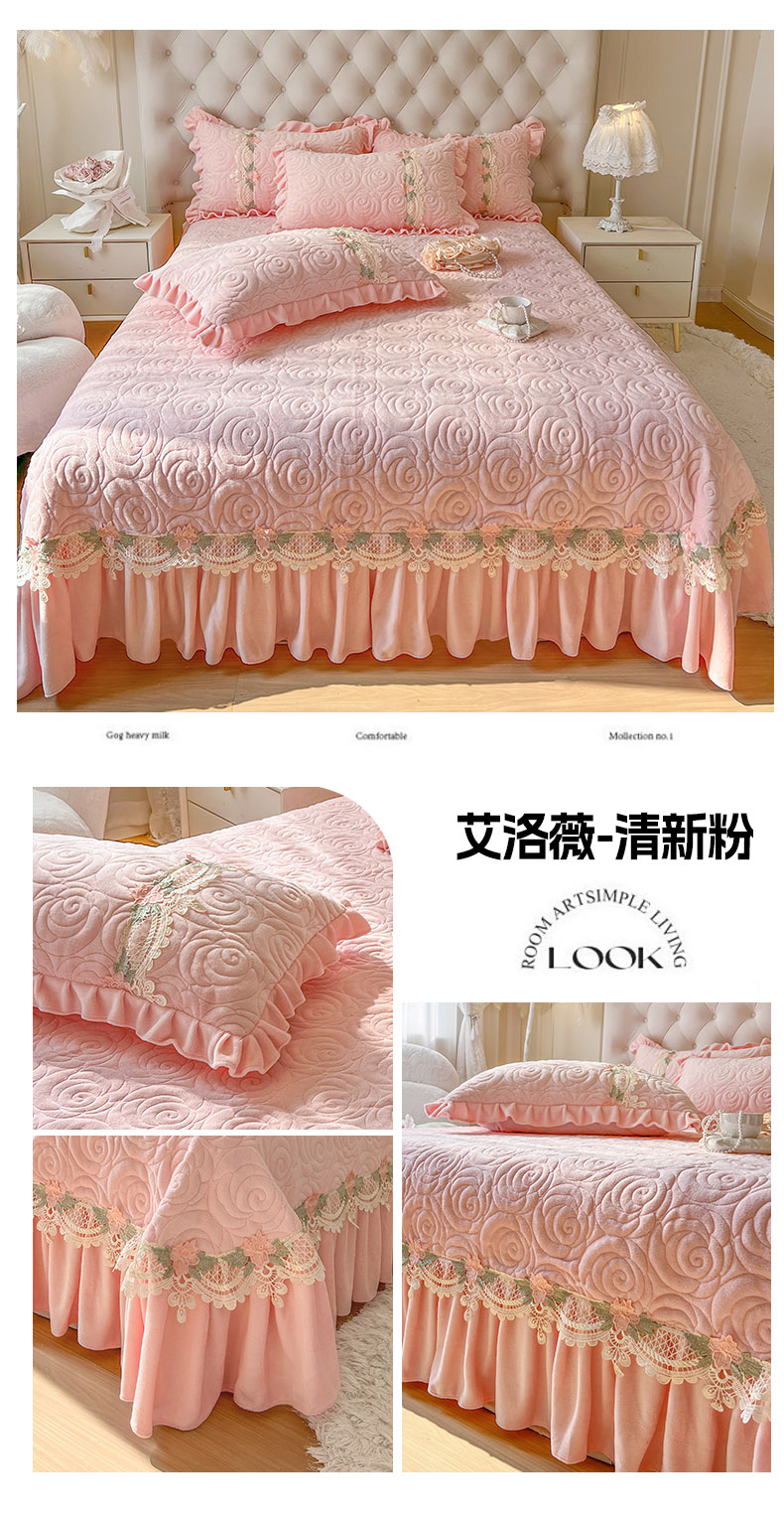 (总)恋尚 2025新款柔软牛奶绒保暖蕾丝床裙四件套-玫瑰故事(控价305),玫瑰故事-蜜桃粉,玫瑰故事-奶茶色,玫瑰故事-椰蓉灰,玫瑰故事-香芋紫,玫瑰故事-清新粉,玫瑰故事-香草绿