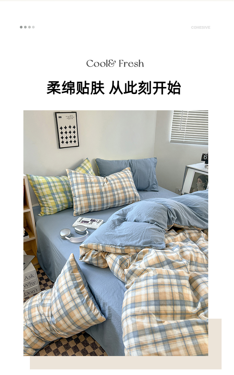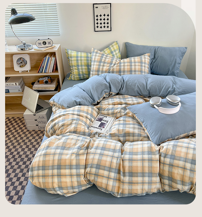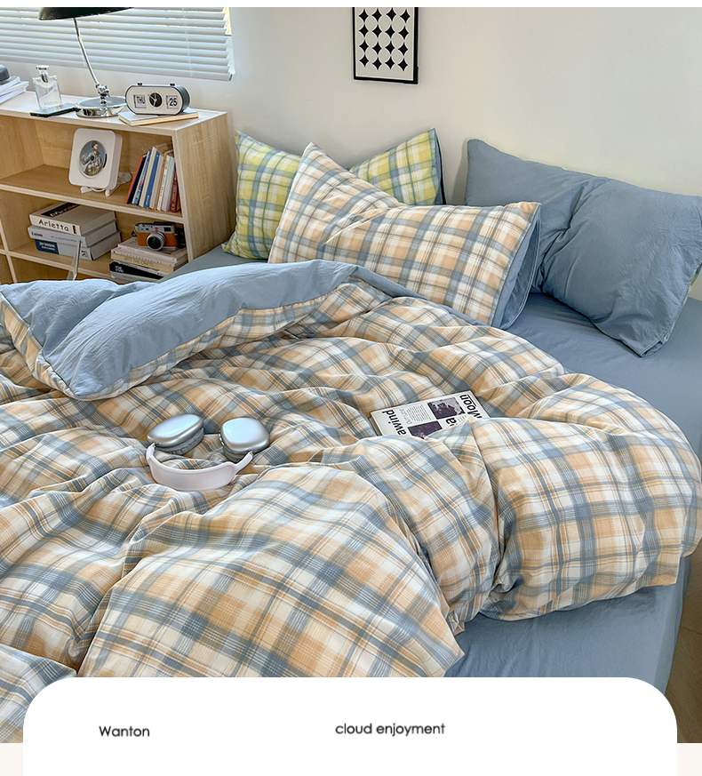 当前位置: 91家纺网 > 商品网购 > 床品套件 > 四件套 > 水洗棉四件套 > 悦织湾家纺 2025新款日式简约格子系水洗棉床单款床笠款套件 宝贝-咖