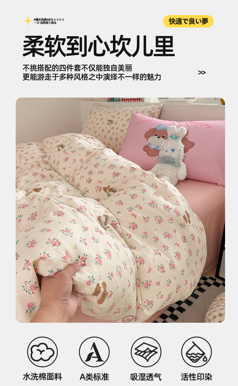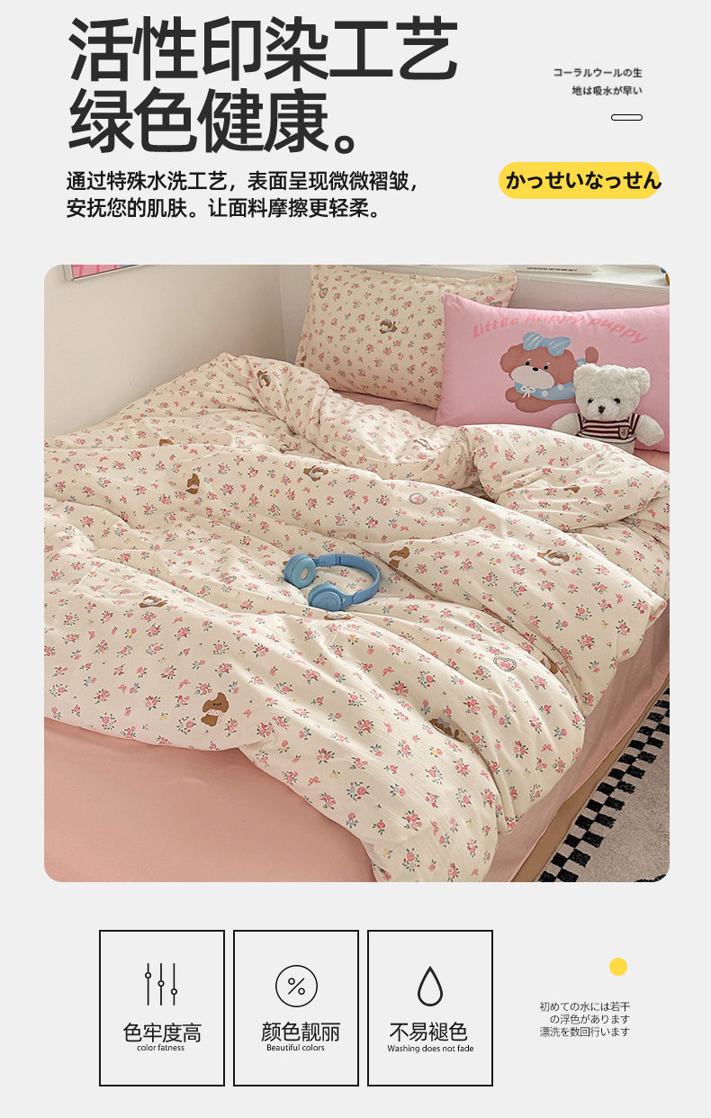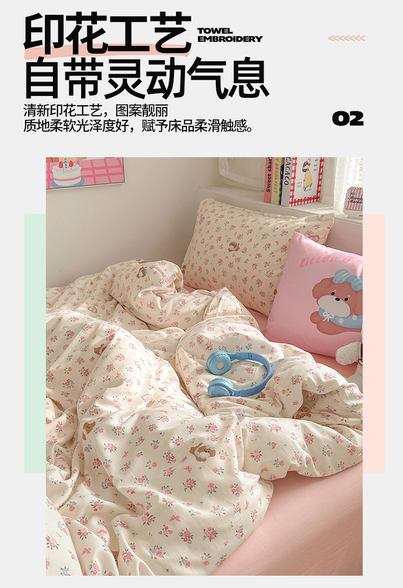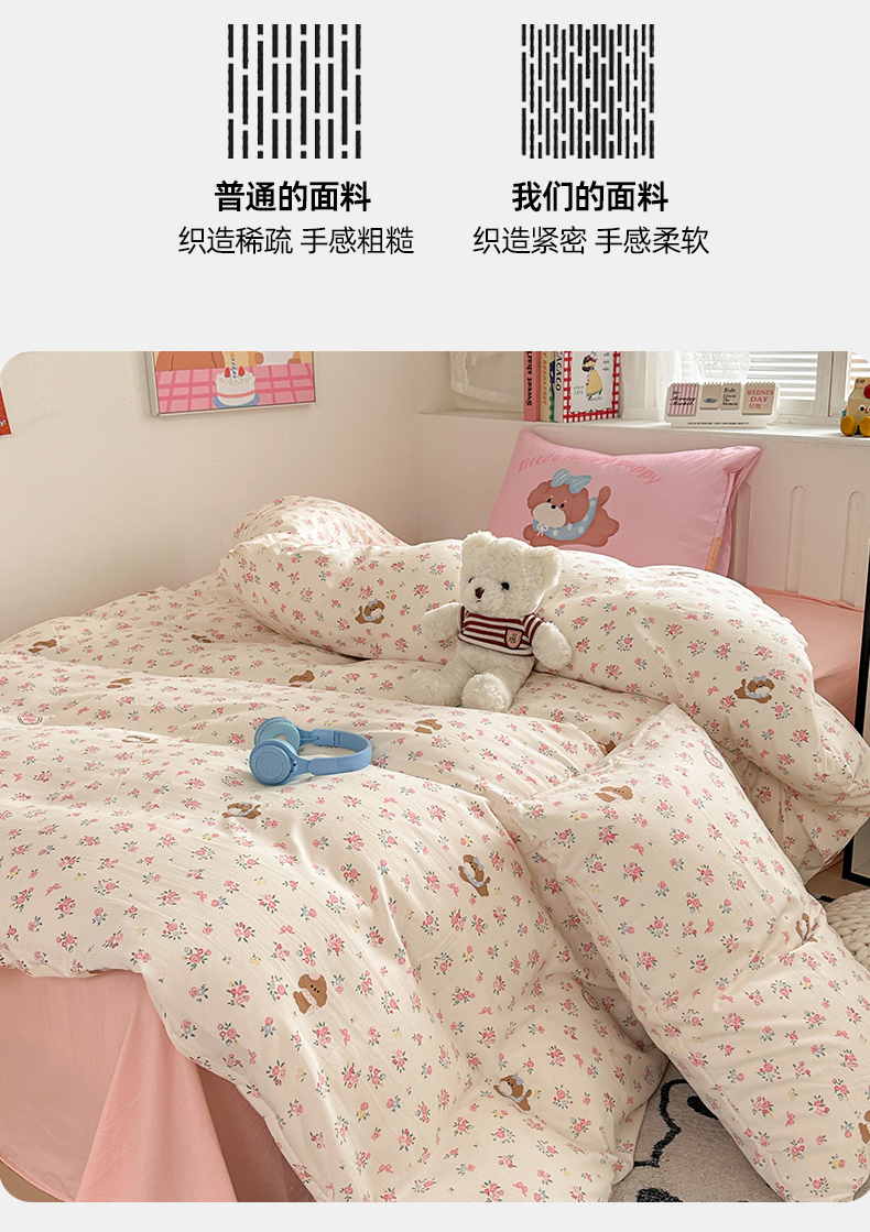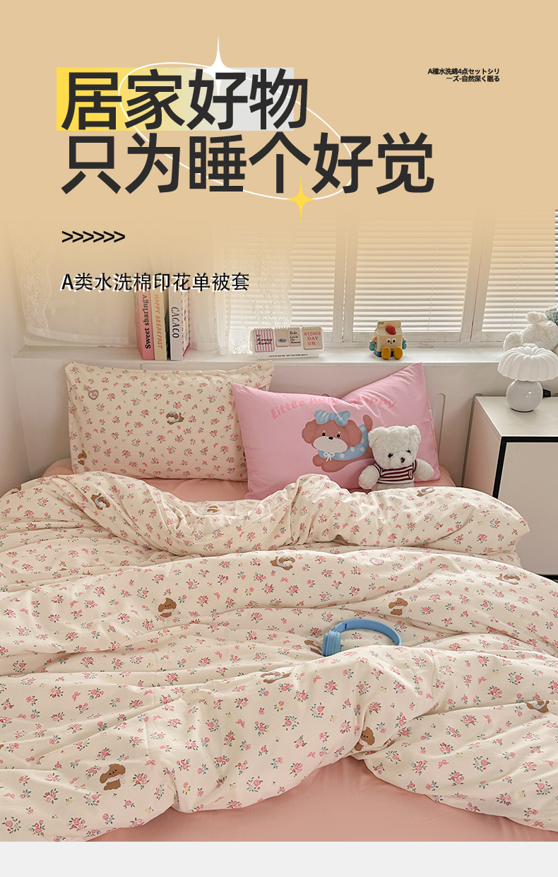 多品家纺 2024新款水洗棉大版枕套混搭单被套 浪漫花园