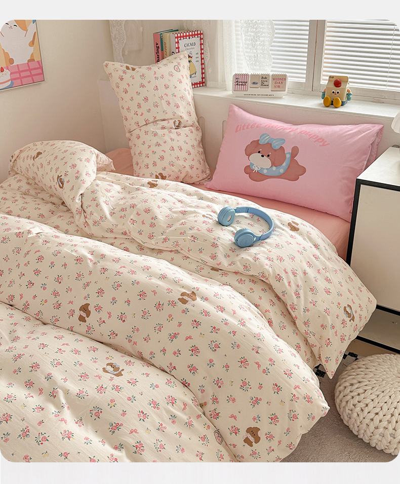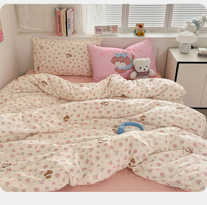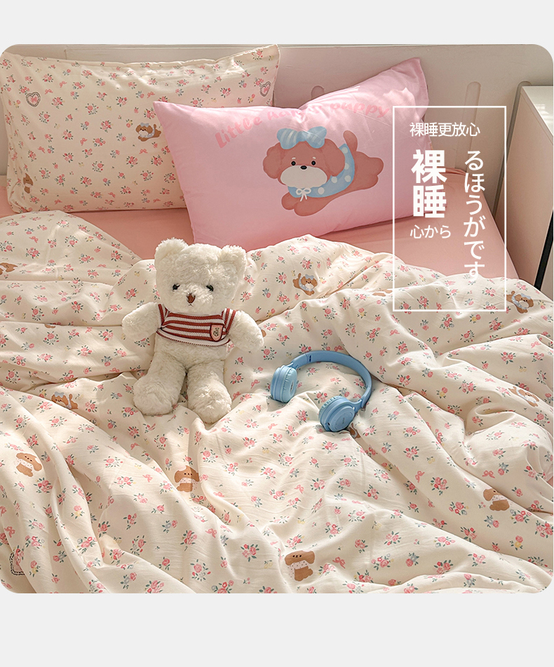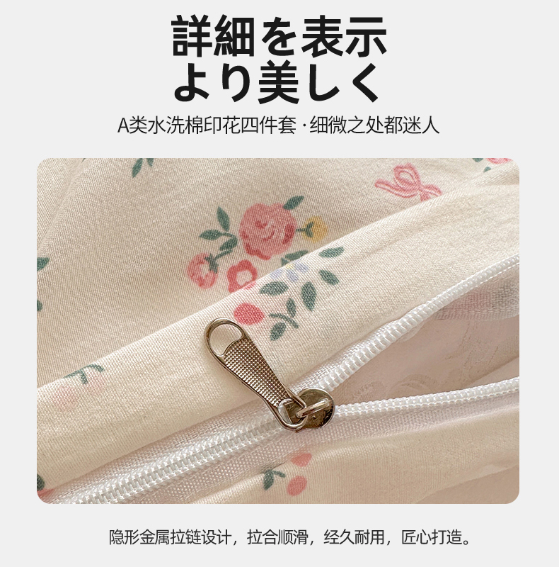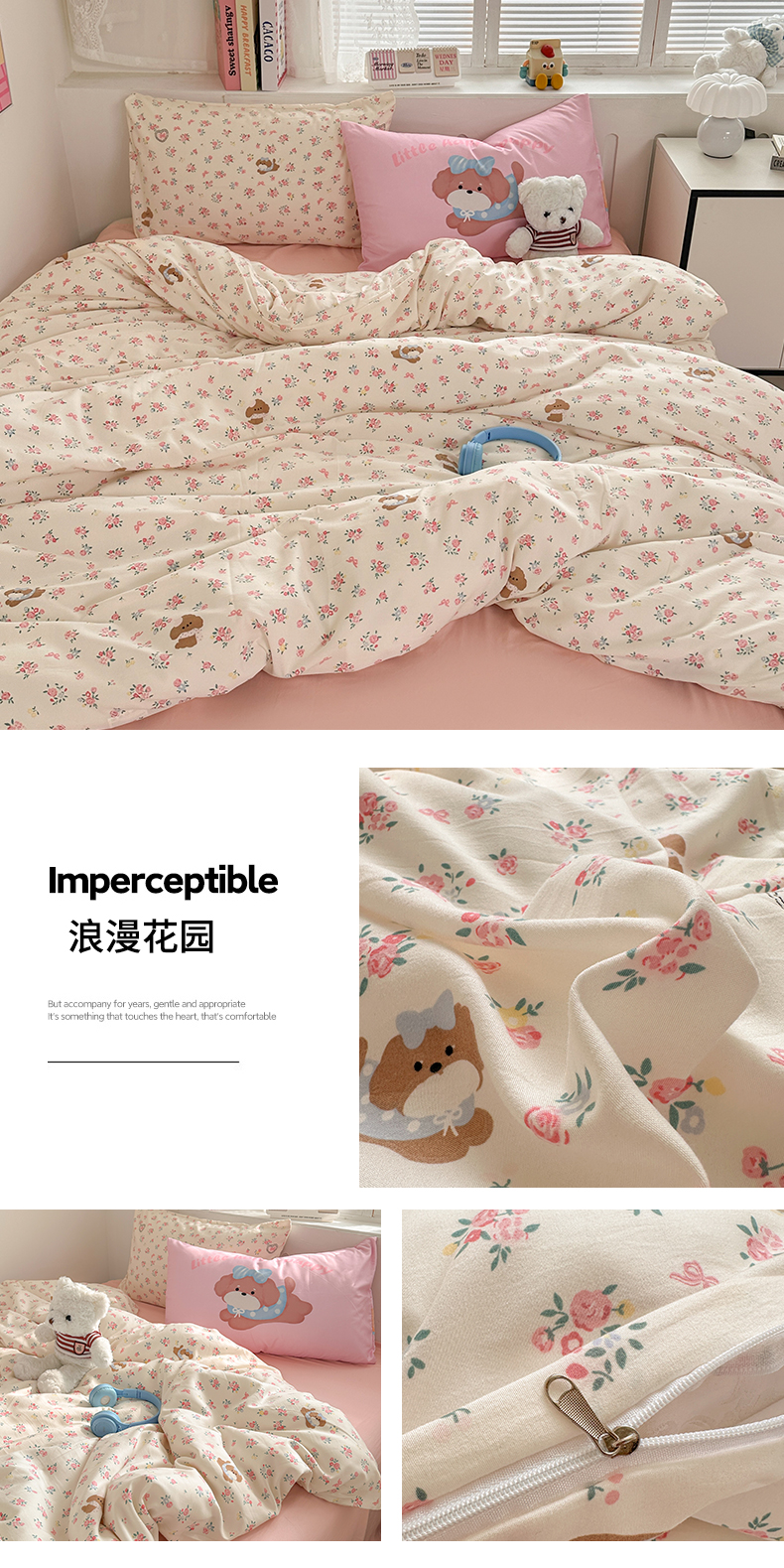 多品家纺 2024新款水洗棉大版枕套混搭单被套 浪漫花园
