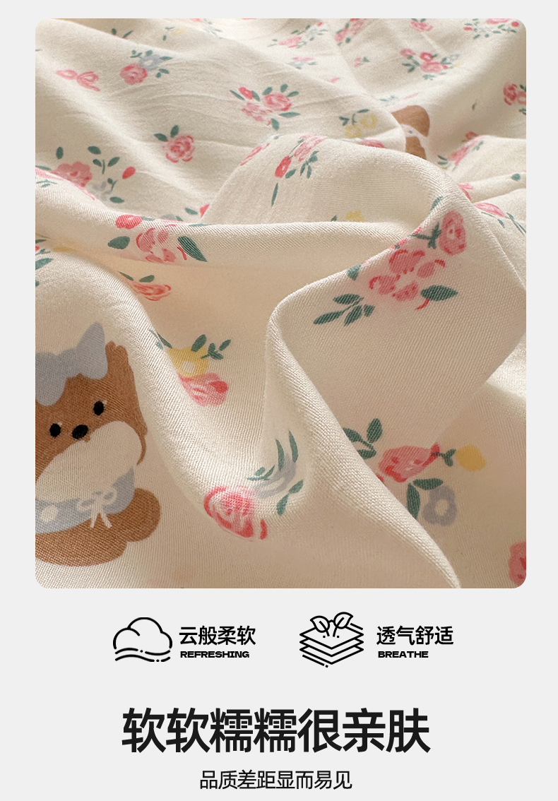(总)多品家纺 2025新款超柔云感双层纱四件套,布丁猫,花城粉,花城兰,可爱贝贝,兰花园,蓝蝶,绿格,绿藤,漫步花庭,梦境紫,米塔丫丫,魔法新新,泡芙兔兔,清荷,五彩草莓,心动,幽香,紫烟