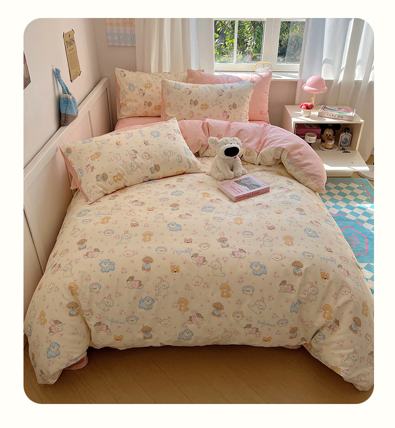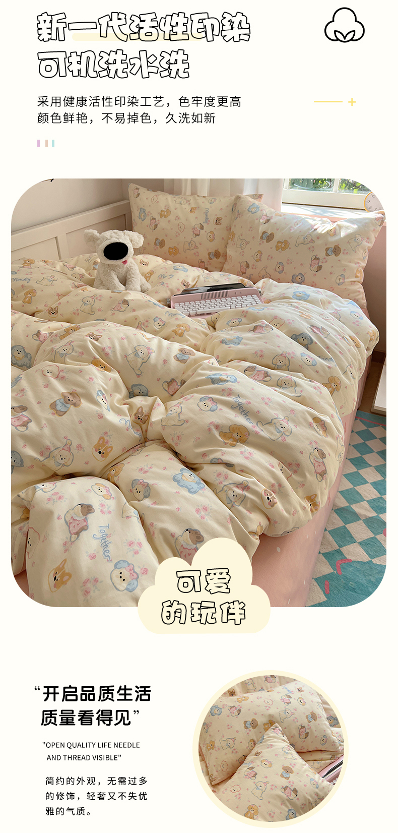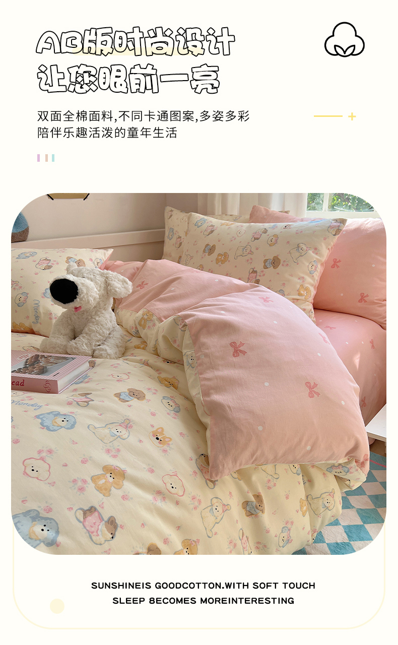 (总)瑞莱 2025夏季新款全棉纯棉有氧双层纱四件套,格子狗(粉),春日女孩,格子狗(蓝),功夫熊猫,何枝小兔,花园小狗,萝莉兔,萌萌狮,梦幻花园兔,少女象(绿),熊孩子,原宿小兔