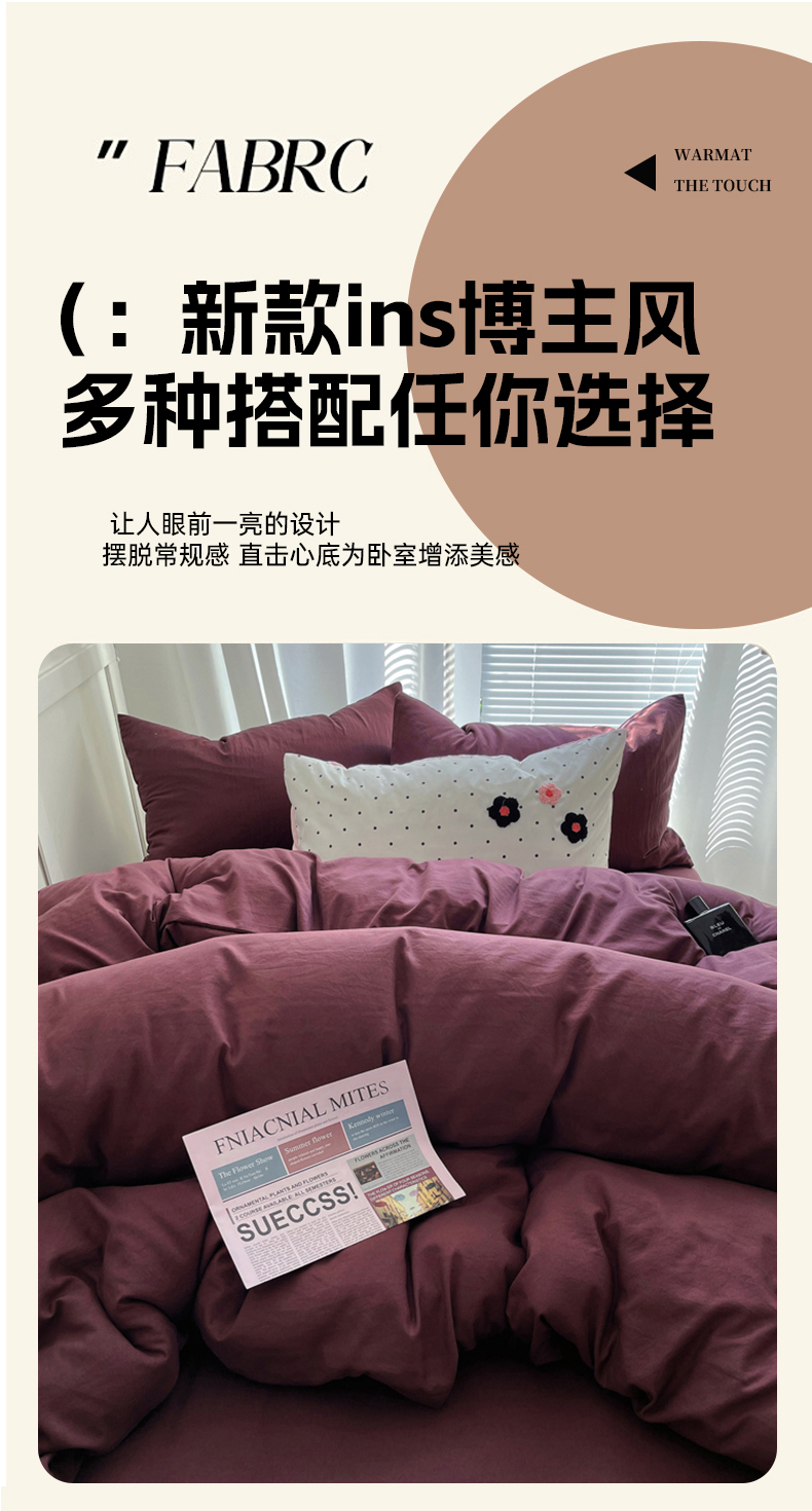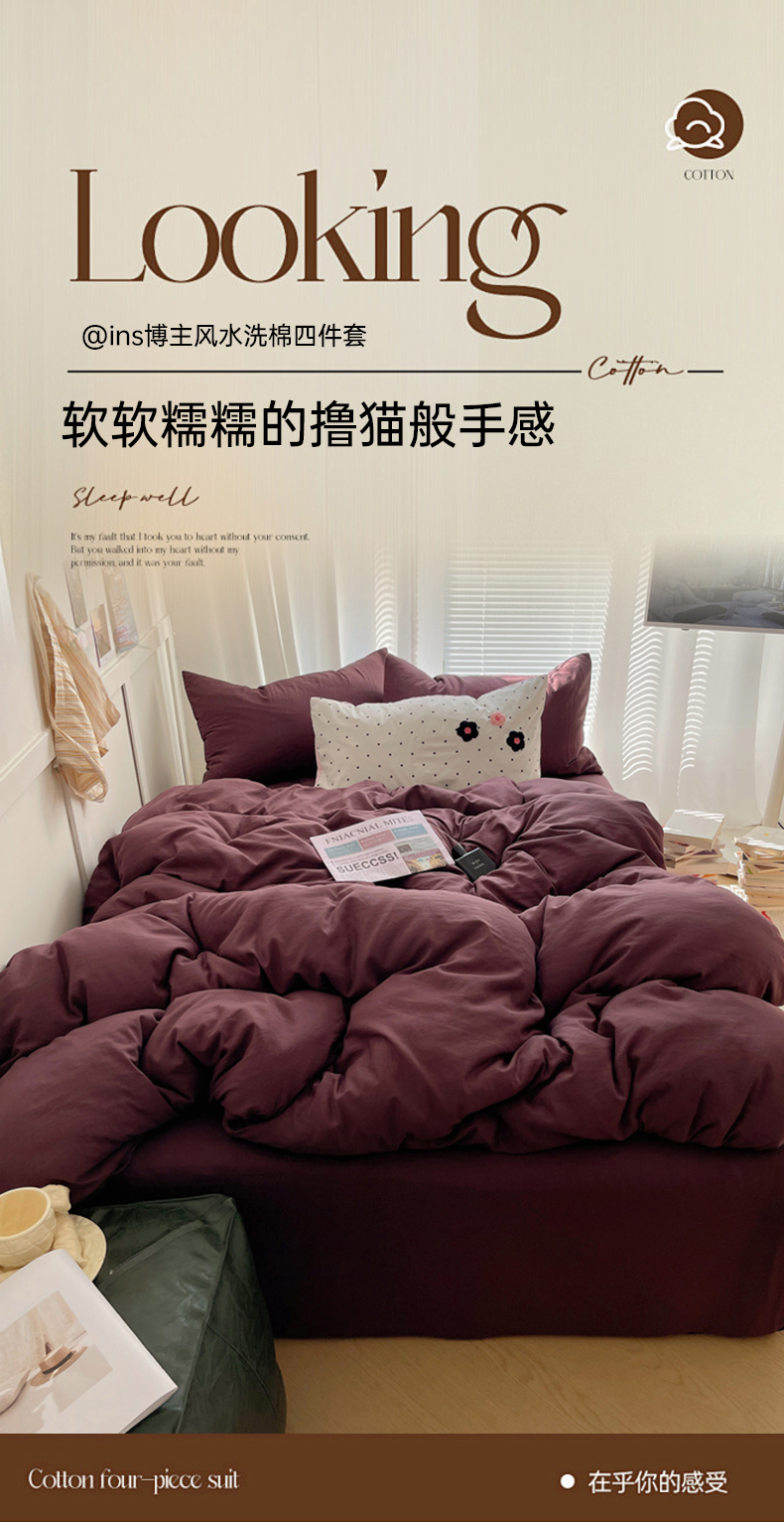 当前位置: 91家纺网 > 商品网购 > 床品套件 > 四件套 > 水洗棉四件套 > 阿曼达 2024最新款奶fufu-ins博主风纯色、混搭、双色软软糯糯亲肤透气水洗m四件套(软糯舒适,非市场普通面料!!!)水洗m-幻紫
