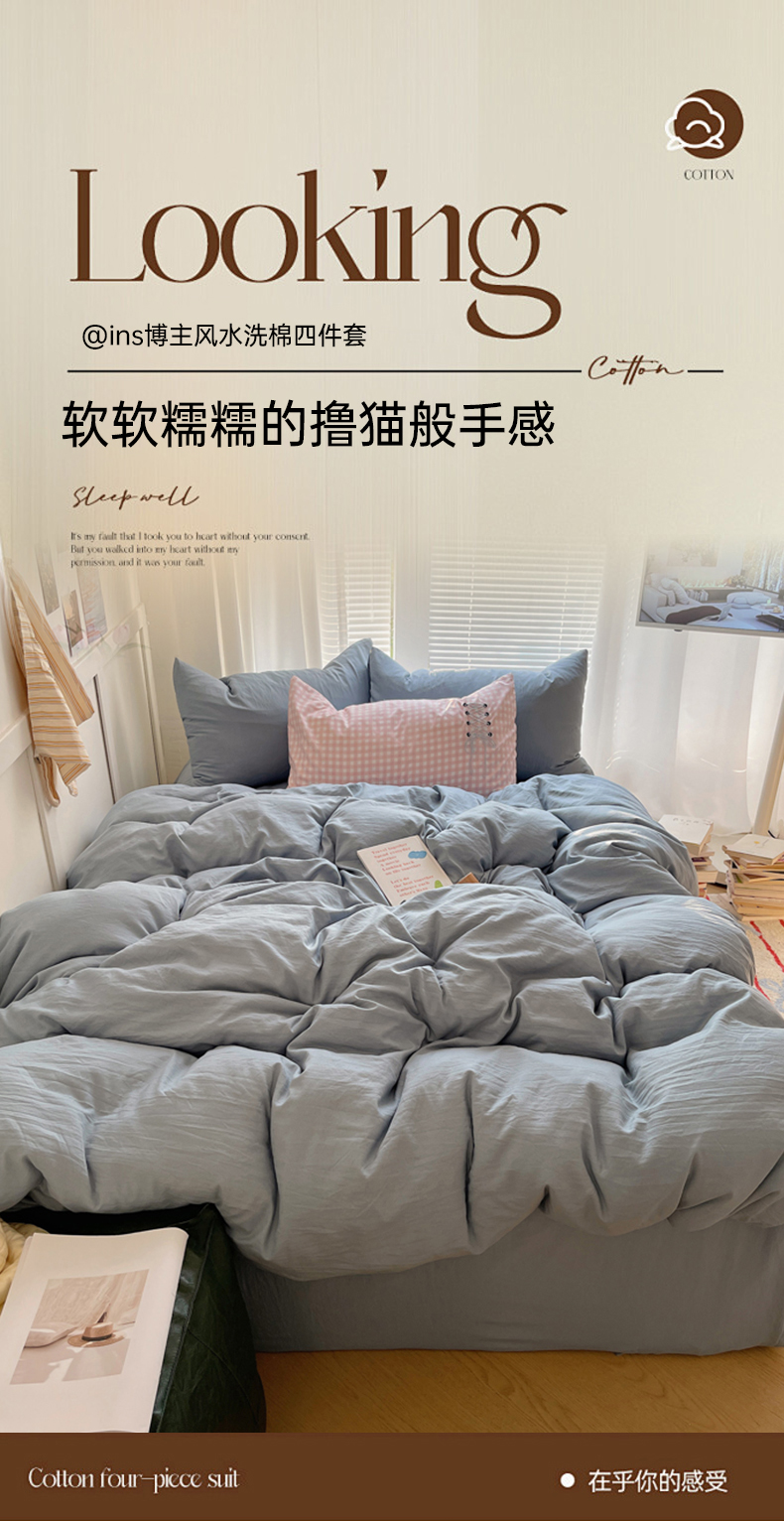 当前位置: 91家纺网 > 商品网购 > 床品套件 > 四件套 > 水洗棉四件套 > 阿曼达 2024最新款奶fufu-ins博主风纯色、混搭、双色软软糯糯亲肤透气水洗m四件套(软糯舒适,非市场普通面料!!!)水洗m-麦蓝色