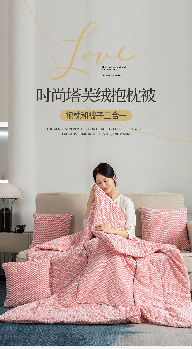 (总)雷人家纺 2023新款时尚塔芙绒多功能加厚抱枕被