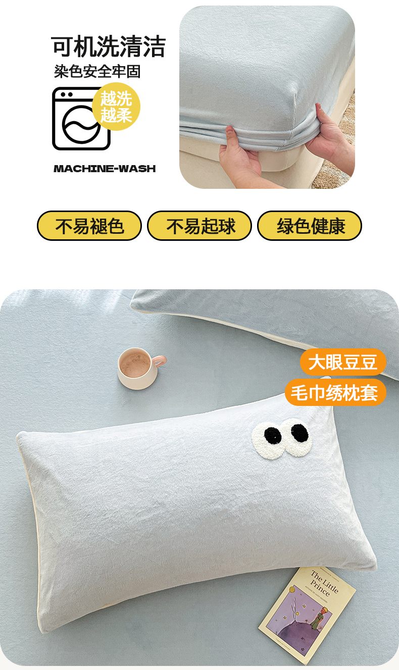 桃子家居 2025新款A类ins大眼豆豆加厚牛奶绒单品床单床笠三件套系列 绒单品-大眼豆豆天蓝床单