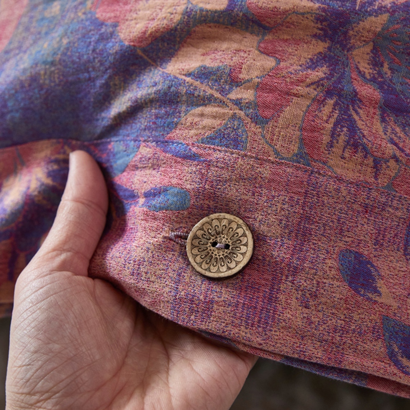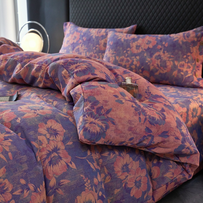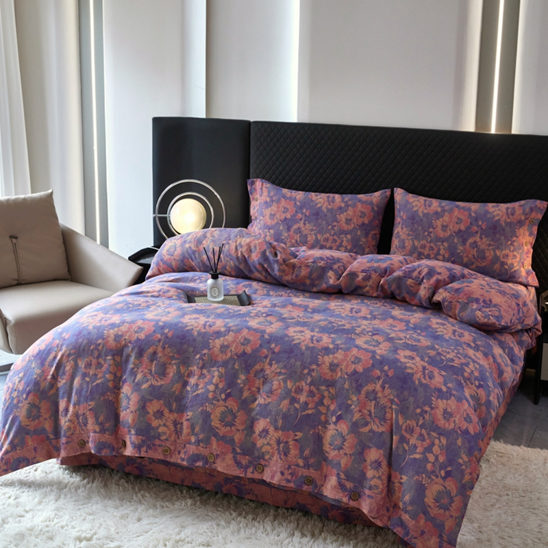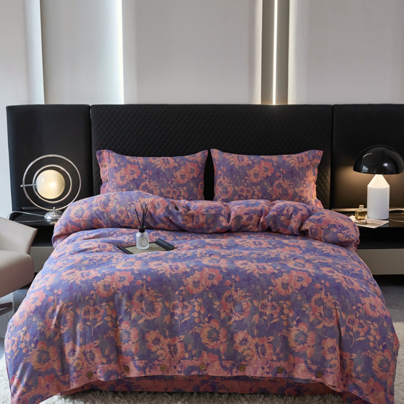 鲁爱 2025新款全棉色织双层纱纽扣款四件套 满庭芳