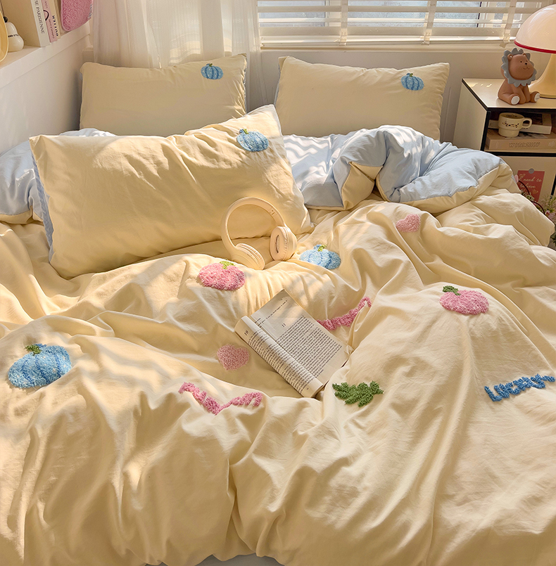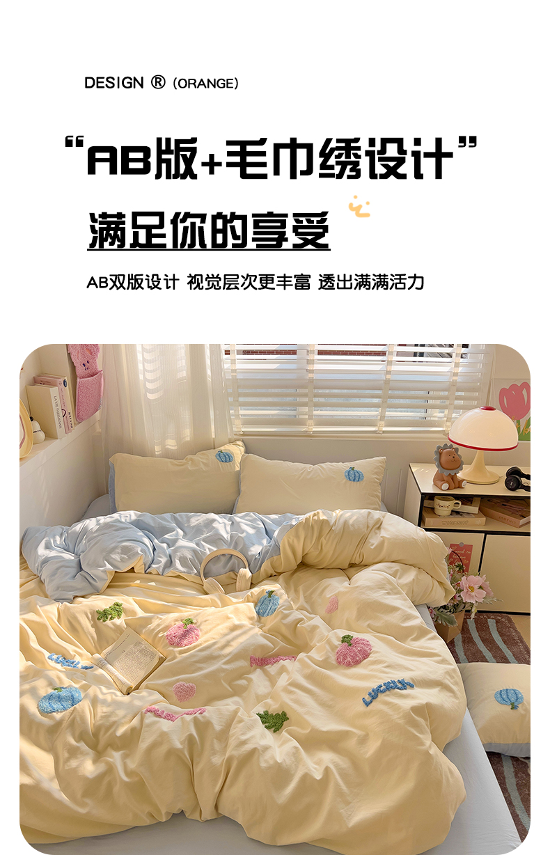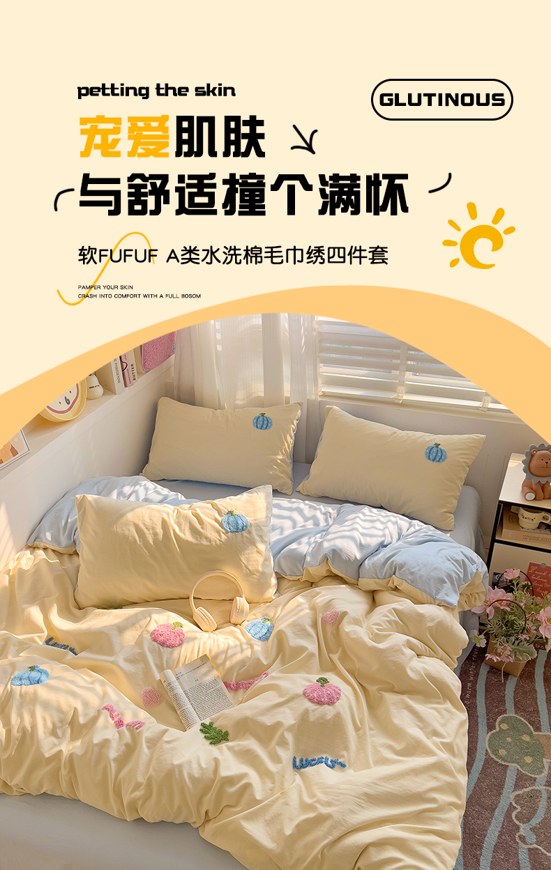 当前位置: 91家纺网 > 商品网购 > 床品套件 > 四件套 > 水洗棉四件套 > 暖芯优选 2025新款超柔水洗棉INS小红书毛巾绣卡通四件套(提供买家秀) 南瓜派对