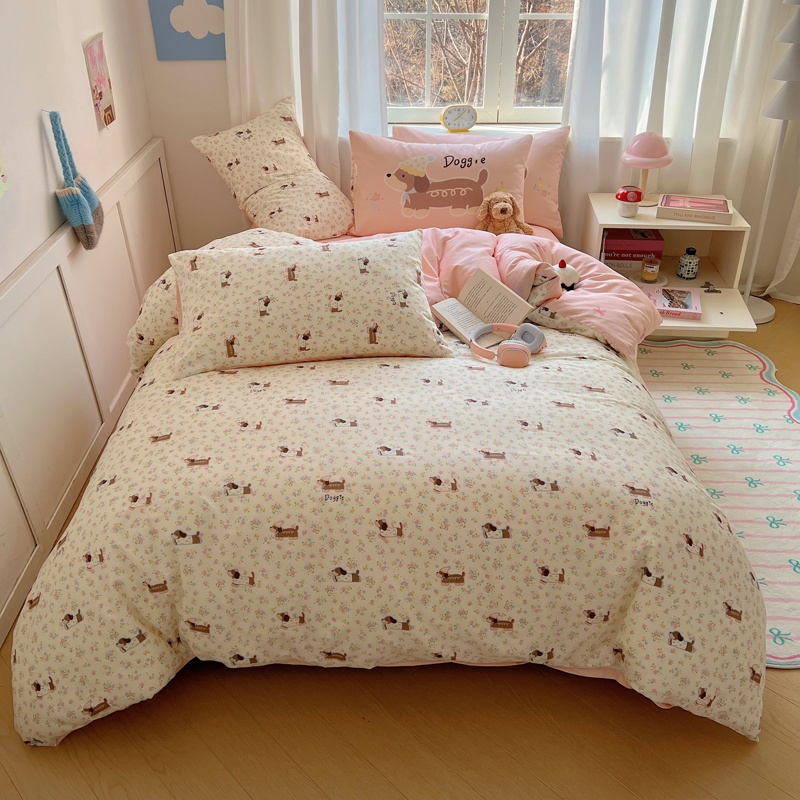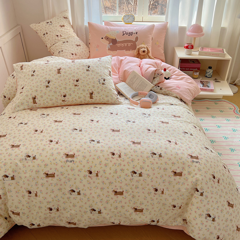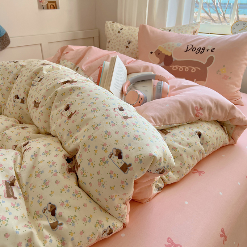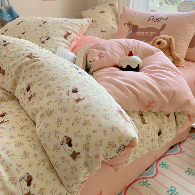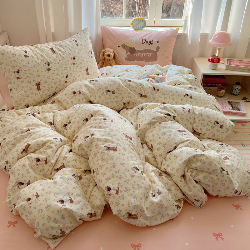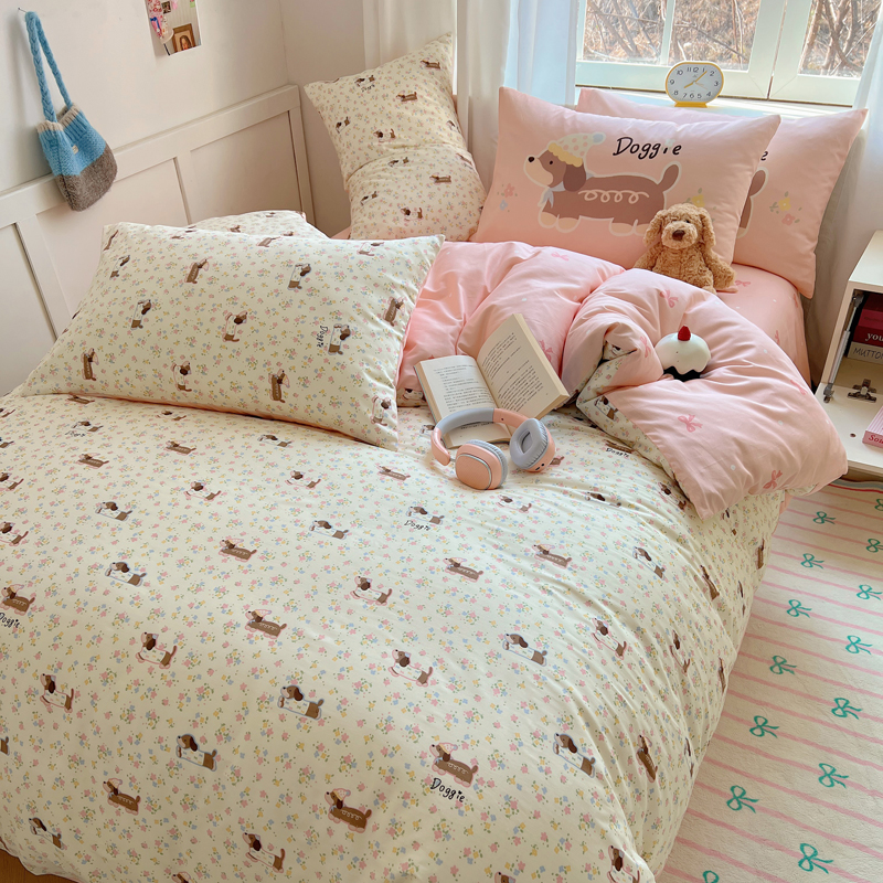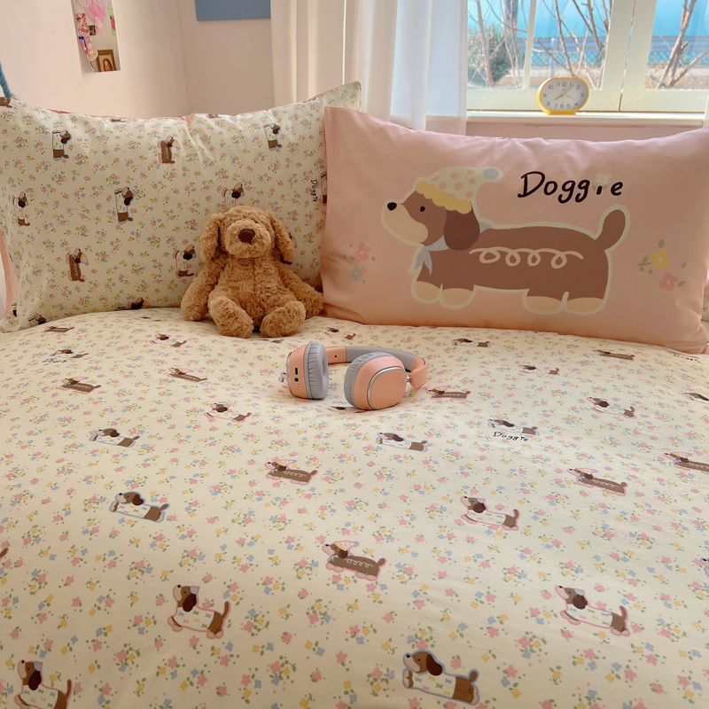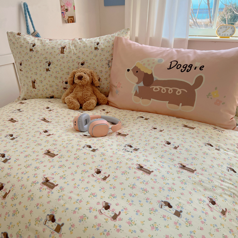 桃喜 2025春夏新款全棉13372大版枕套混搭系列四件套 小花狗